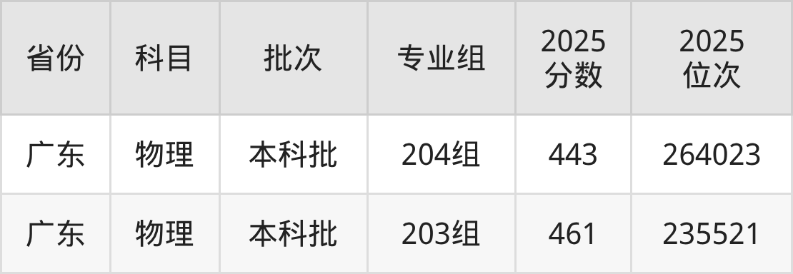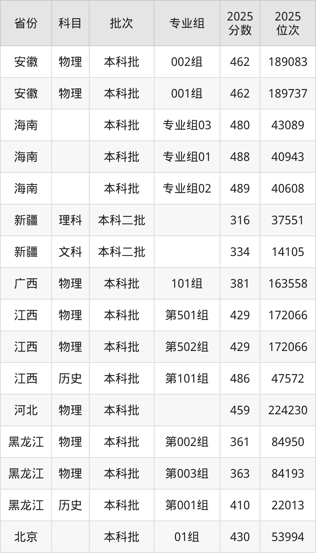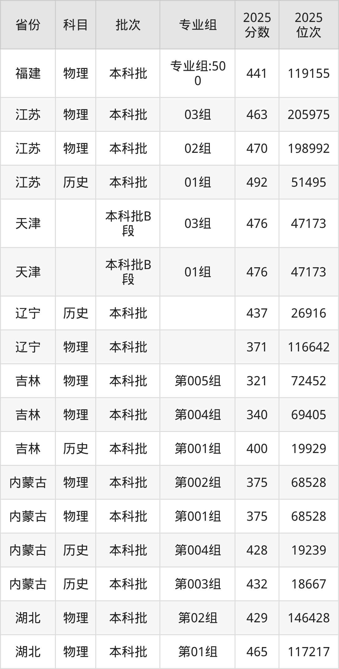 2025年在本科物理类进行招生,各专业组分数线详情如下: