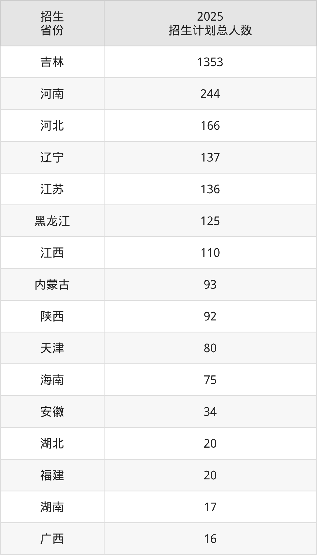 2025年吉林建筑科技学院面向全国20个省市开展本科招生;招生专业共29个,招生人数共2748人。2025年在吉林省招生计划总人数是1353人,其中,吉林建筑科技学院在吉林省招生人数最多的是计算机科学与技术。吉林建筑科技学院在各省具体招生人数情况如下表。