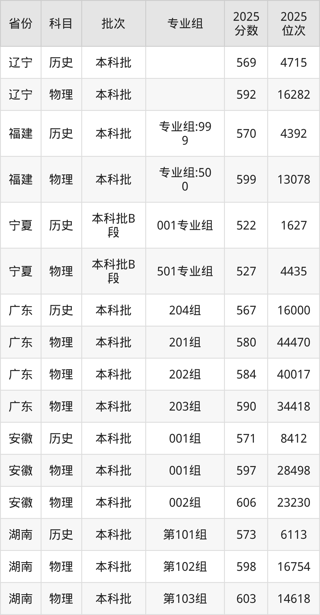 2025年投档录取最低分为592分,录取最低位次为16282名。