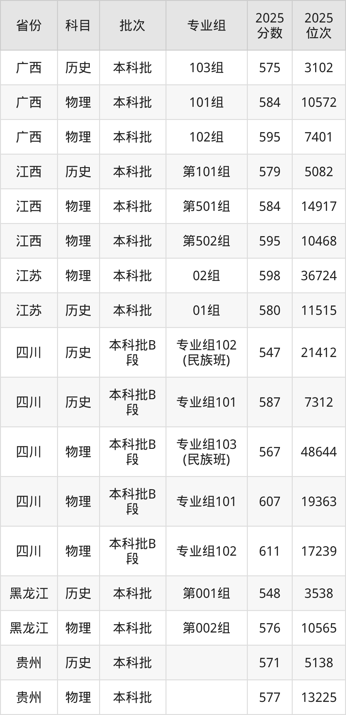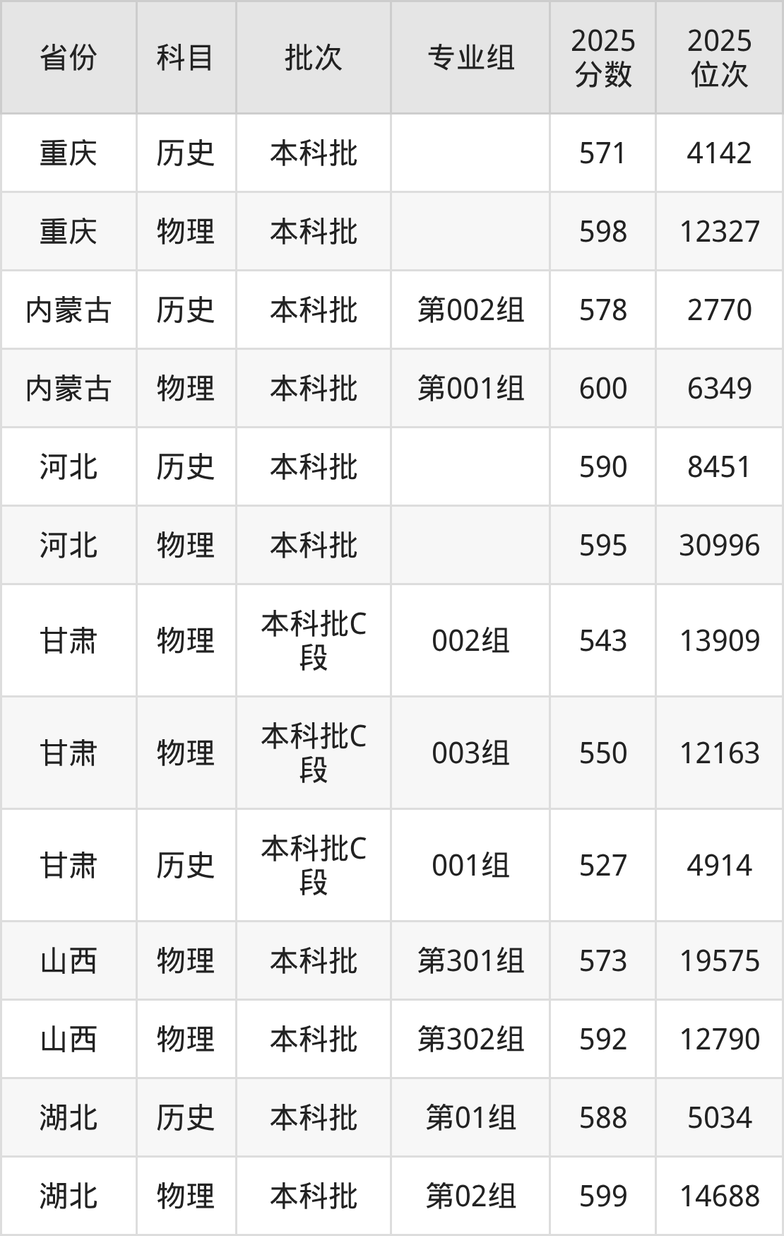2025年投档录取最低分为569分,录取最低位次为4715名。