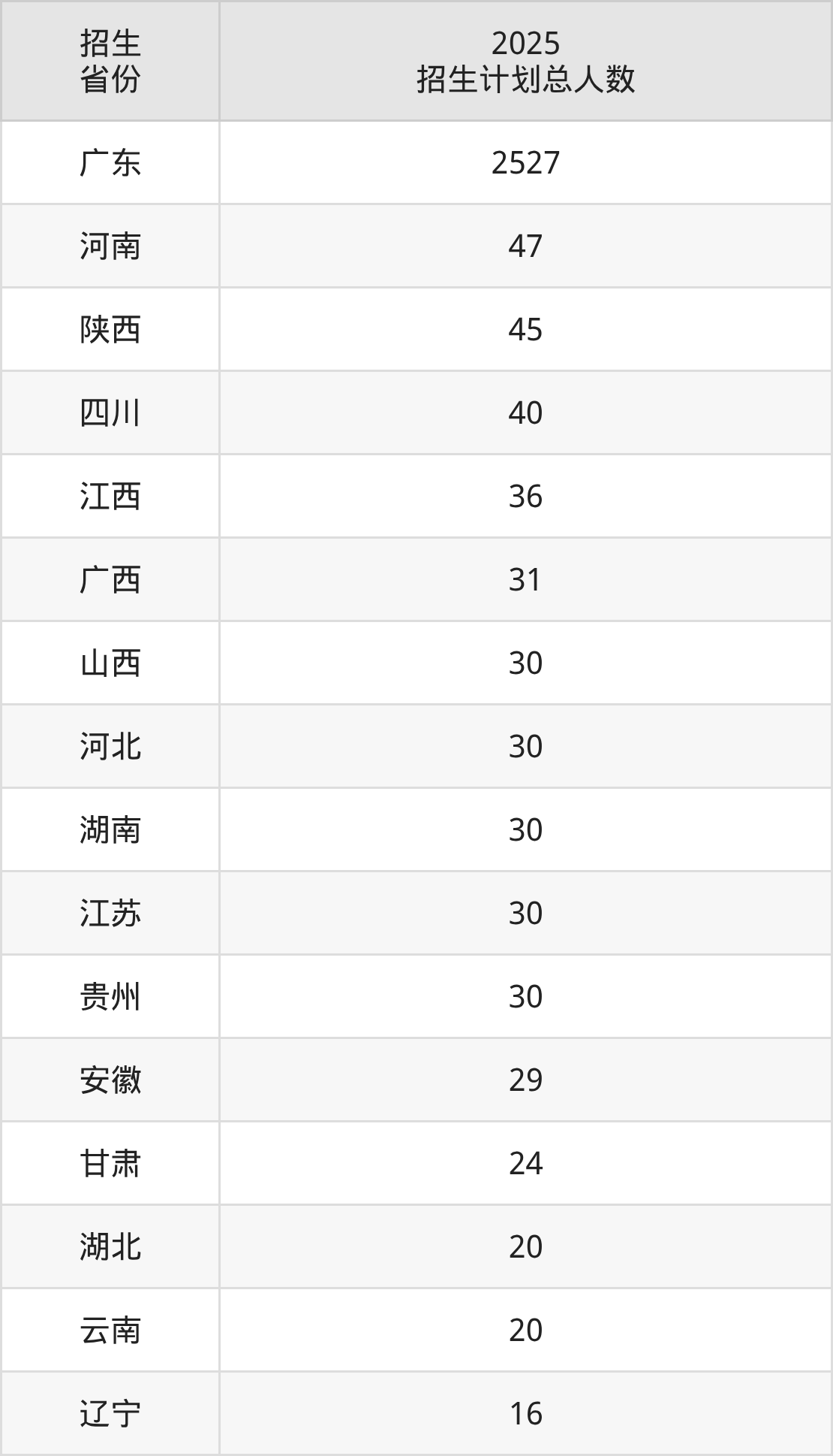 2025年深圳技术大学面向全国22个省市开展本科招生;招生专业共33个,招生人数共3051人。2025年在广东省招生计划总人数是2527人,其中,深圳技术大学在广东省招生人数最多的是微电子科学与工程。深圳技术大学在各省具体招生人数情况如下表。