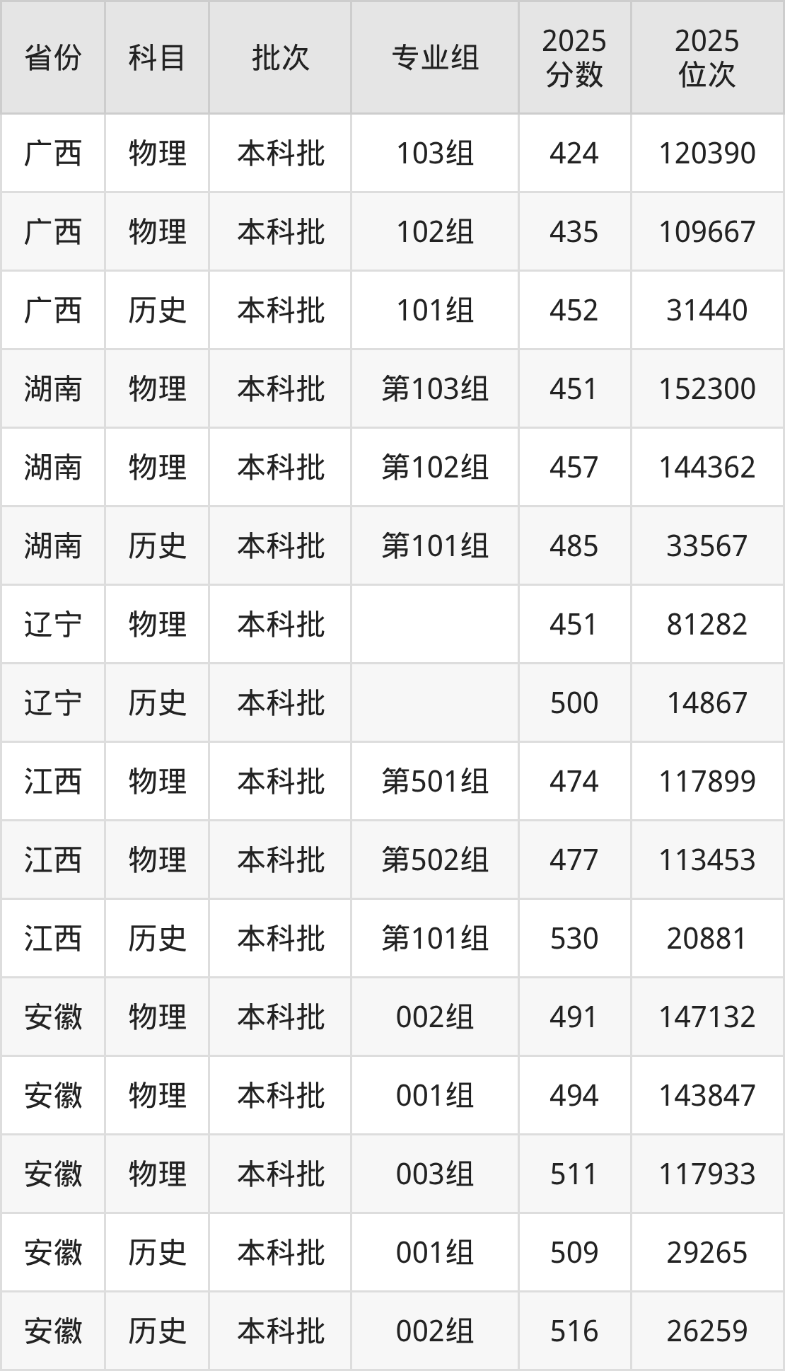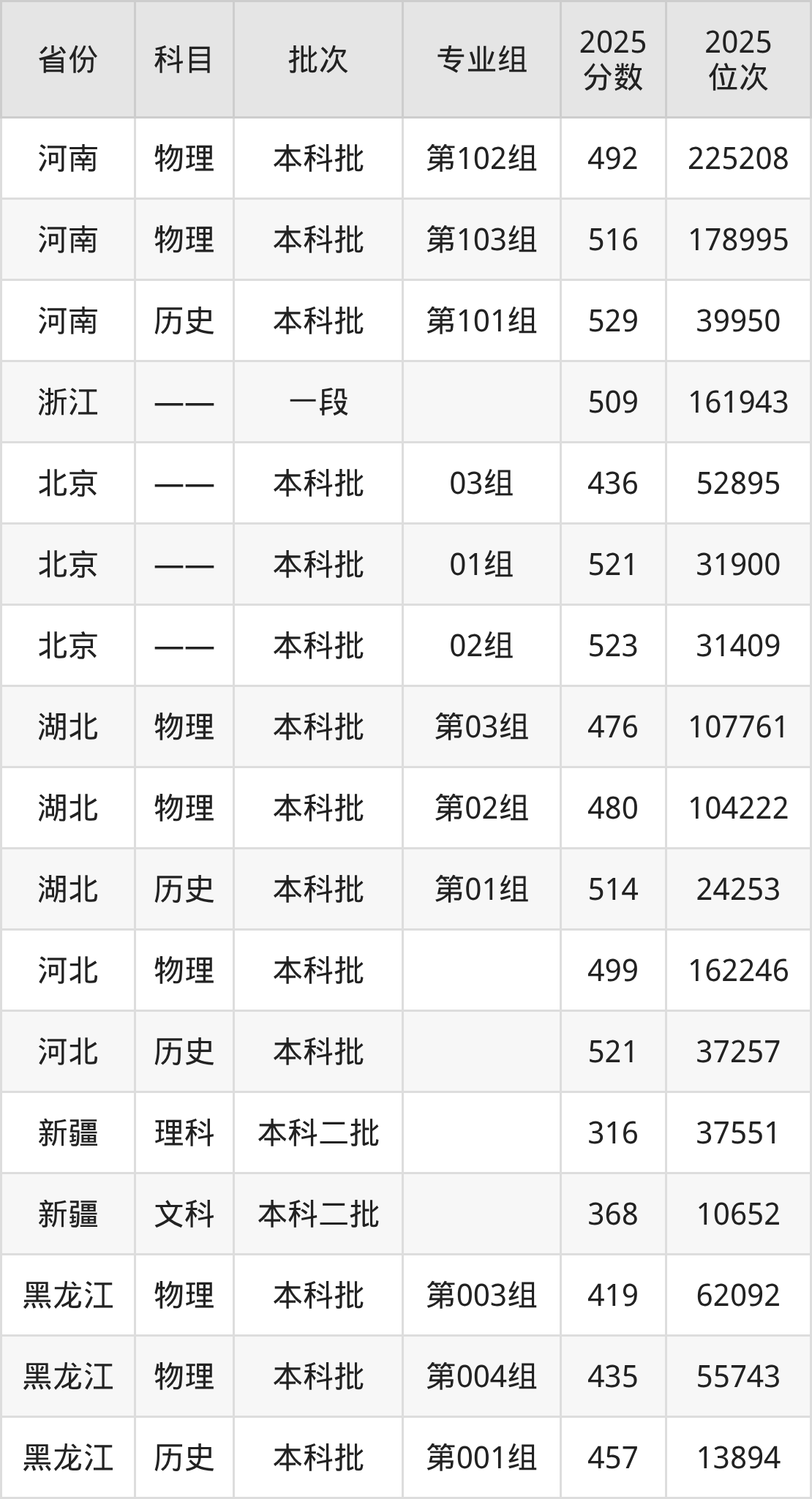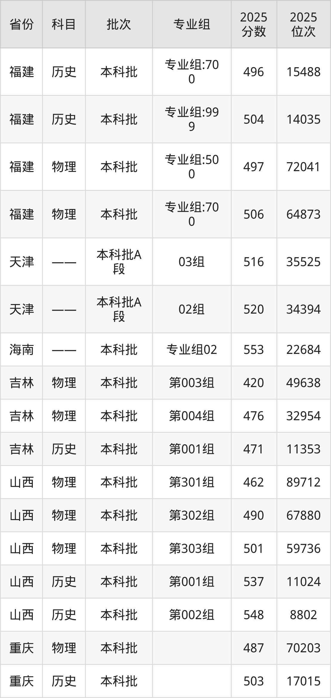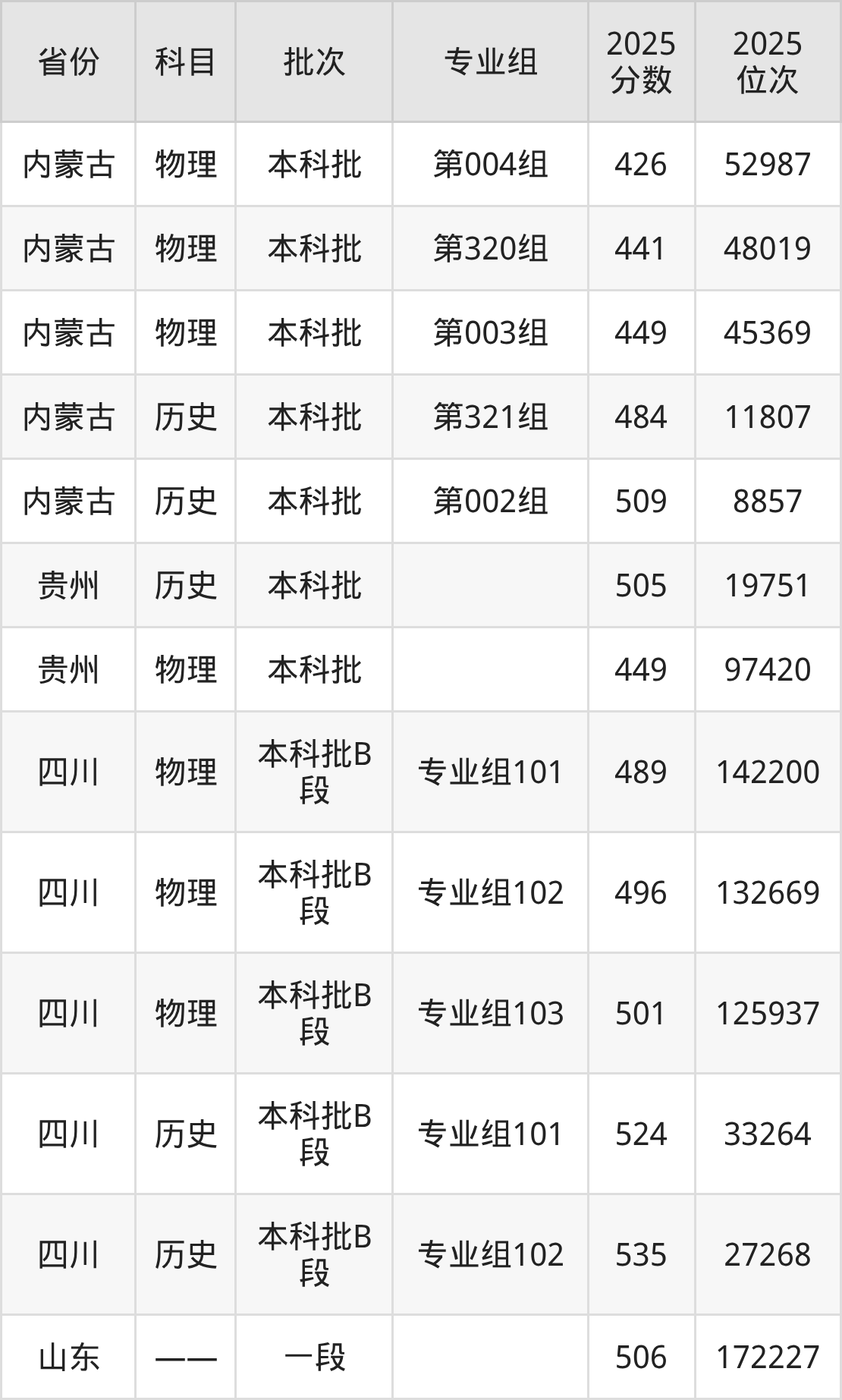 2025年投档录取最低分为505分,录取最低位次为19751名。