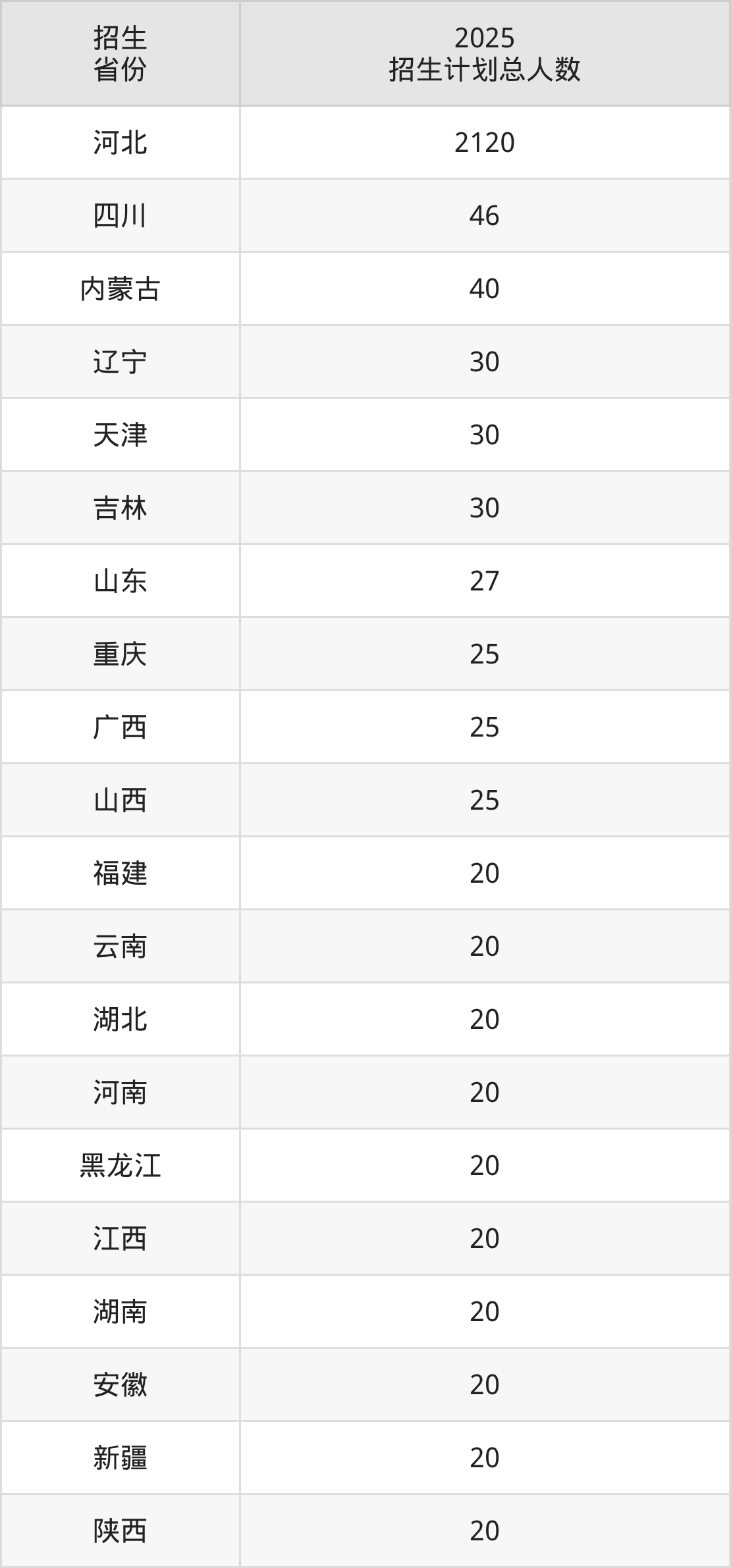 2025年廊坊师范学院面向全国24个省市开展本科招生;招生专业共36个,招生人数共2656人。