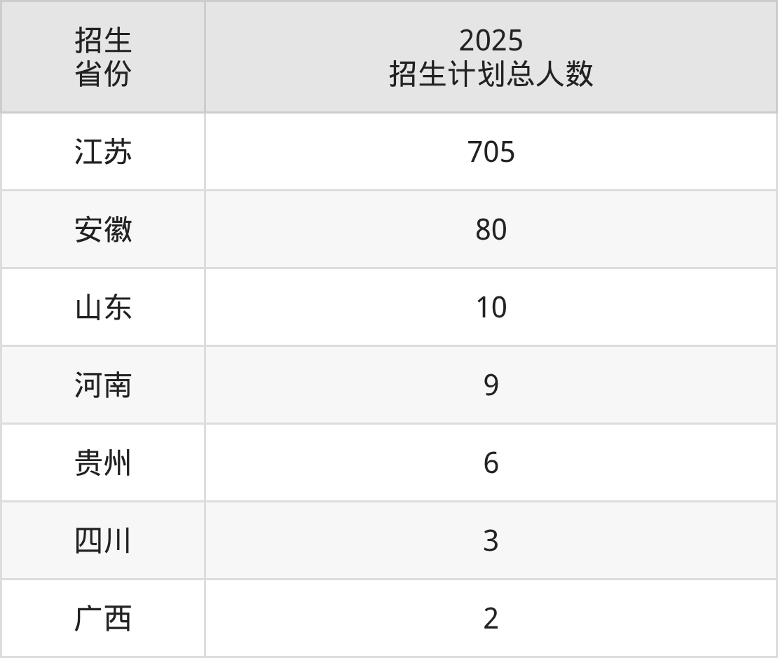 2025年正德职业技术学院面向全国7个省市开展专科招生;招生专业共29个,招生人数共815人。2025年在江苏省招生计划总人数是705人,其中,正德职业技术学院在江苏省招生人数最多的是机电一体化技术。正德职业技术学院在各省具体招生人数情况如下表。