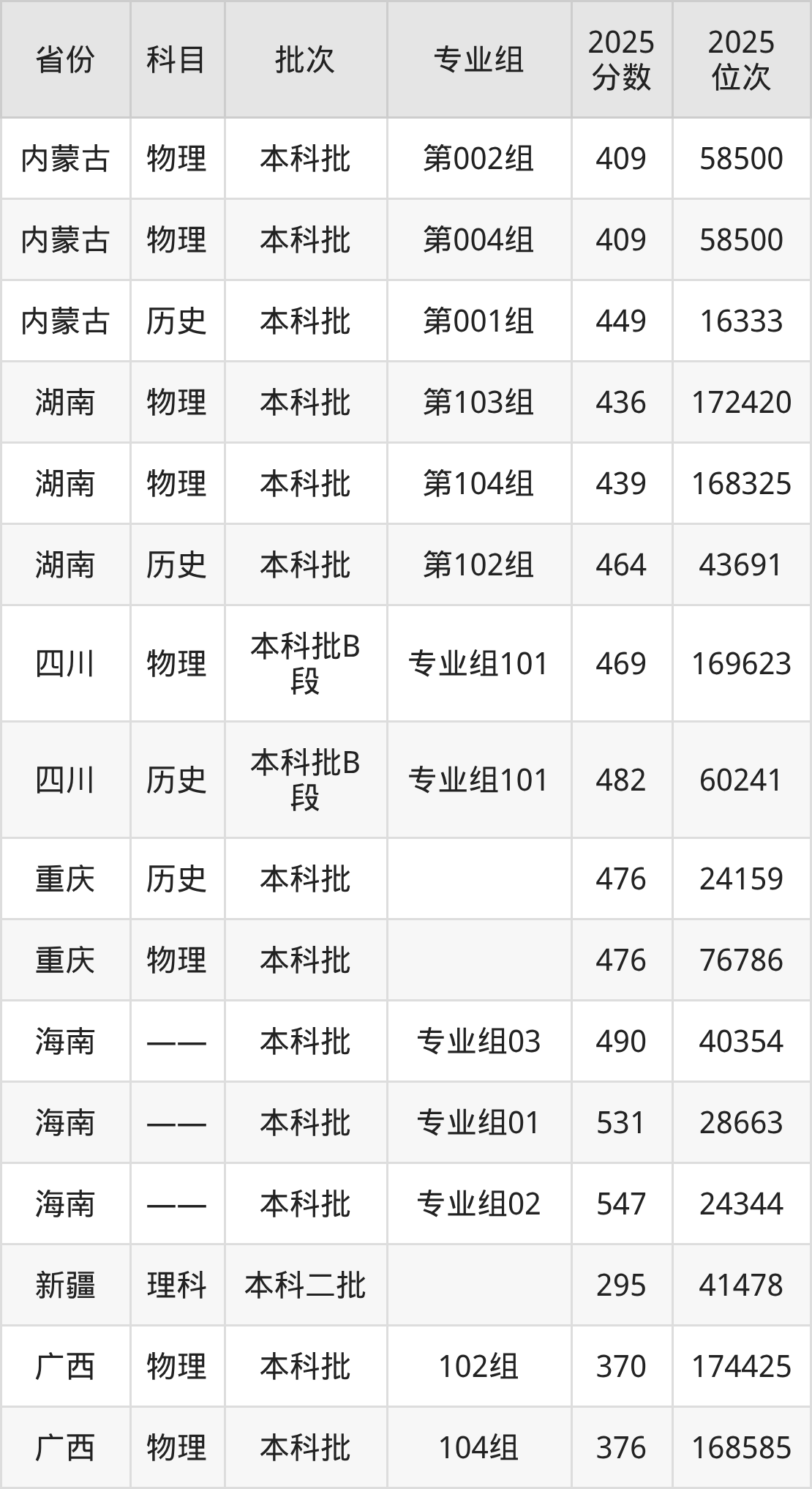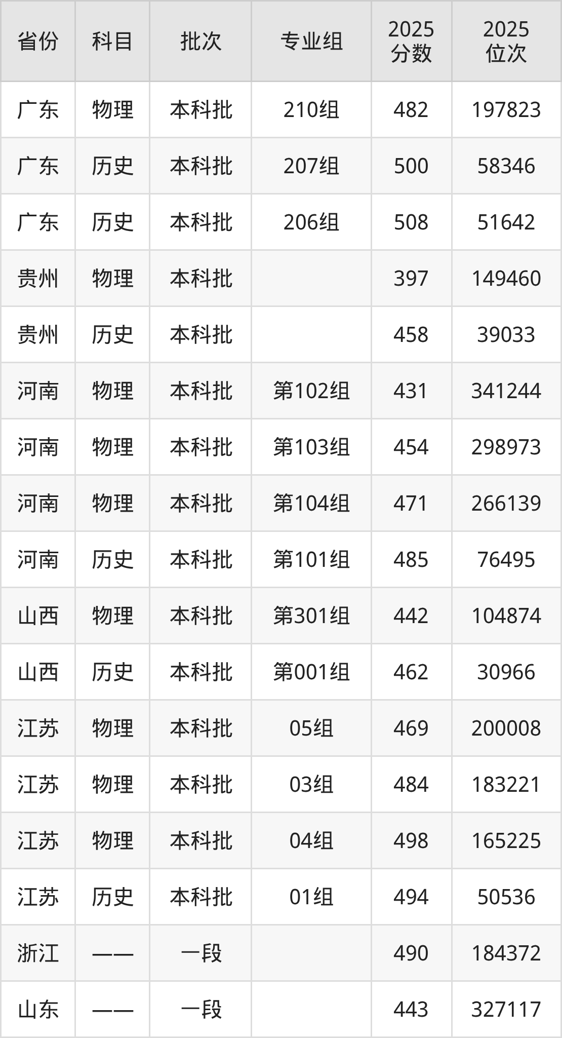 2025年投档录取最低分为491分,录取最低位次为175569名。