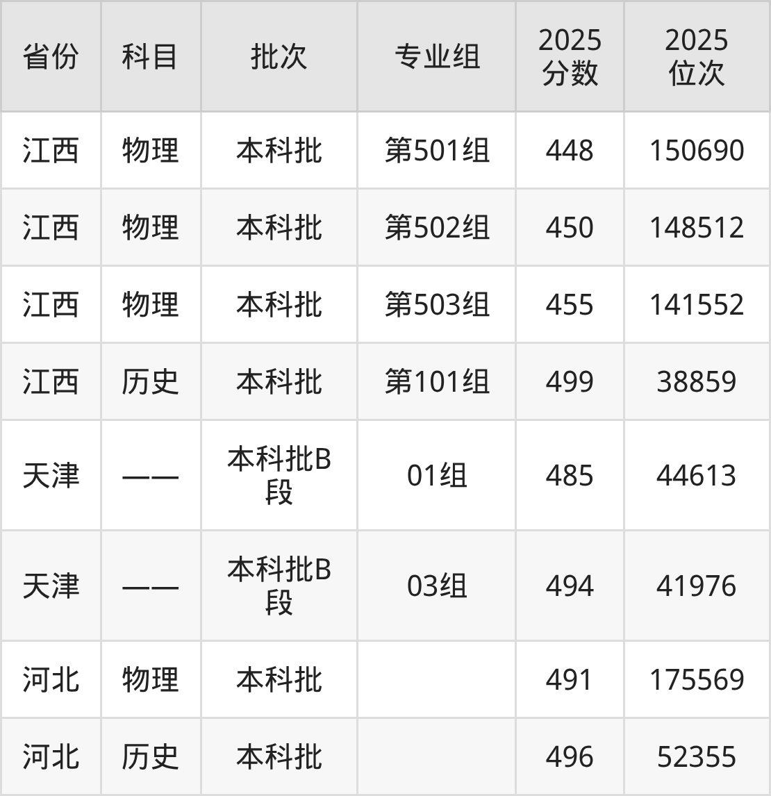 2025年投档录取最低分为496分,录取最低位次为52355名。