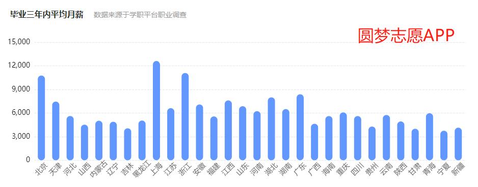 动物生产专业毕业生平均月薪最高的地区为北京、上海、浙江 ,最高在12000元以上,最低的地区为宁夏、吉林、甘肃,最低在3000元以上。(数据来源于学职平台职业调查)