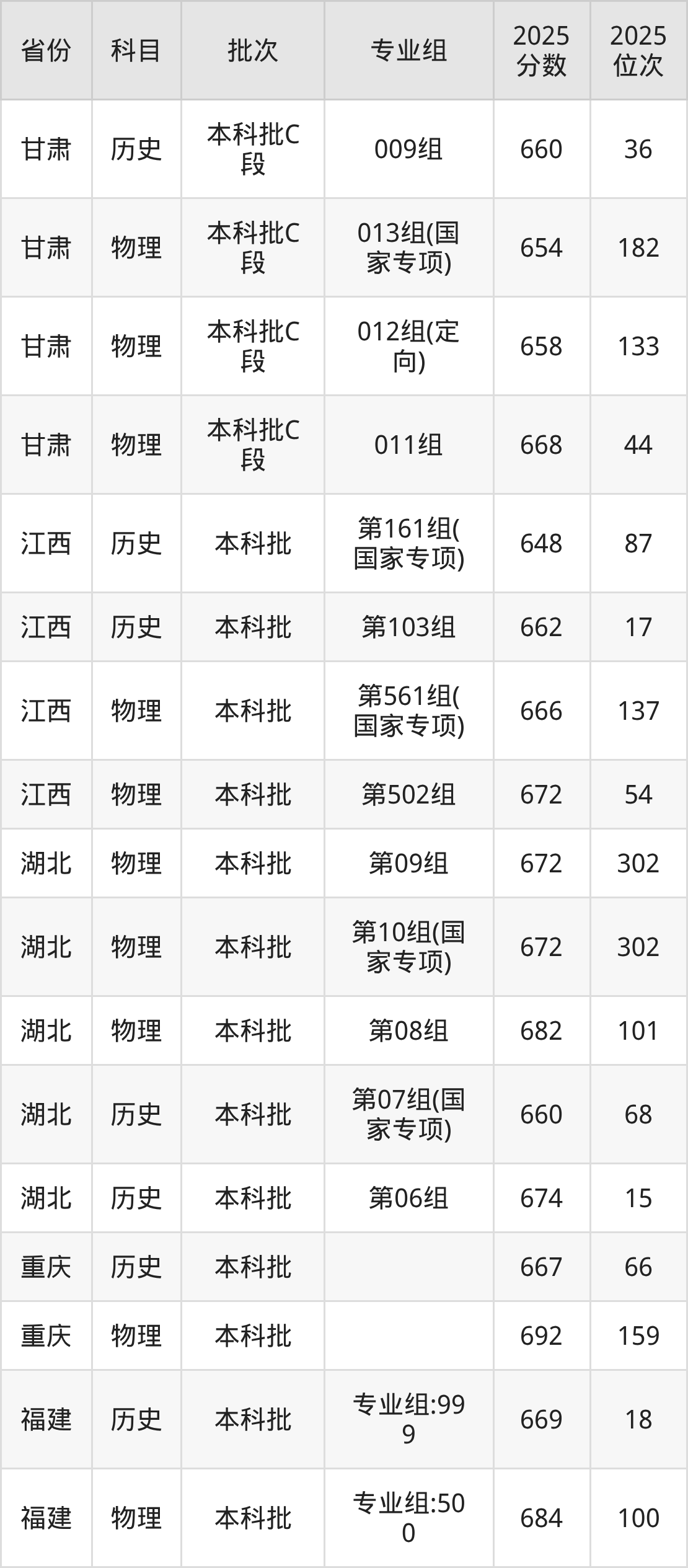 2025年投档录取最低分为663分,录取最低位次为81名。