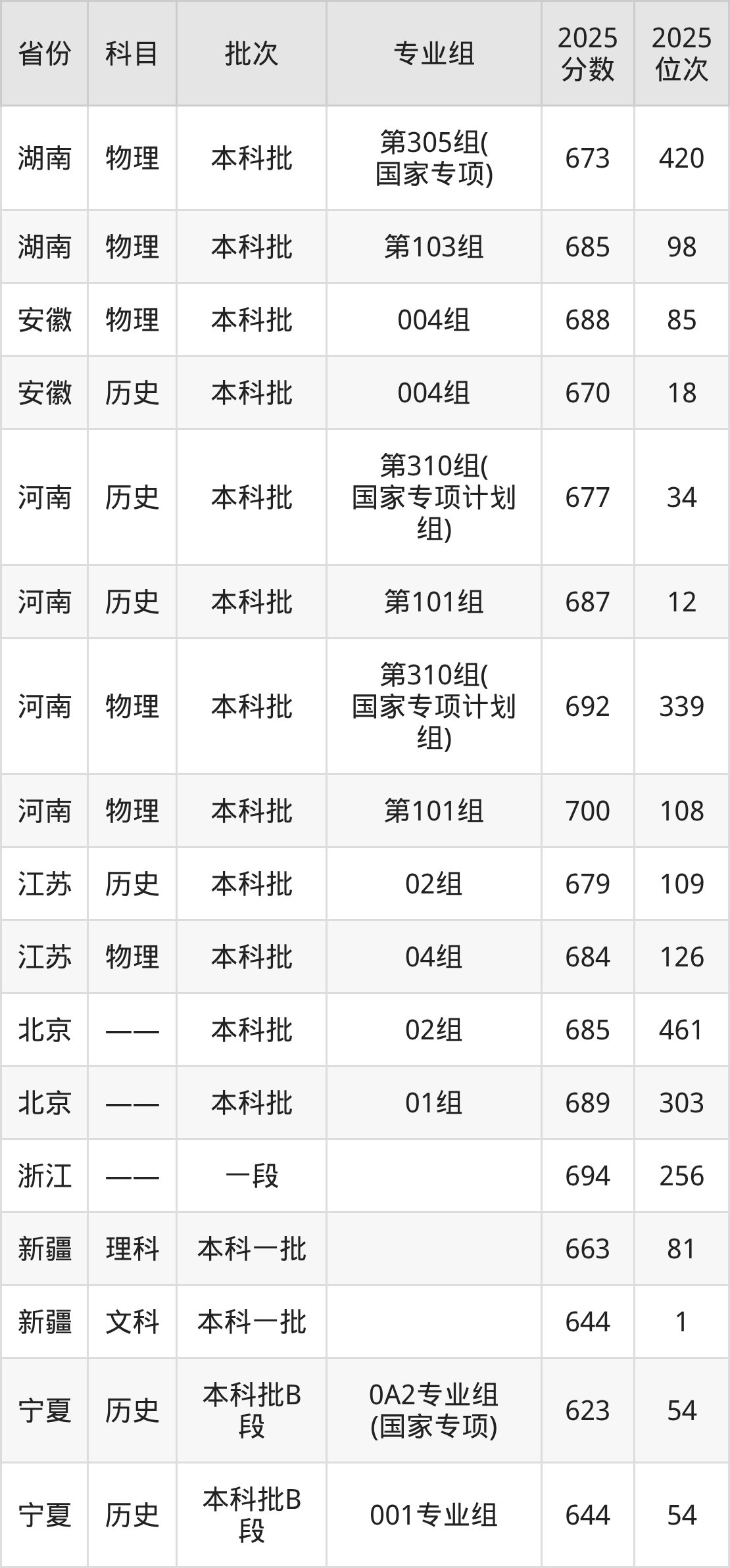 清华大学第305组(国家专项):2025年投档录取最低分为673分,录取最低位次为420名。