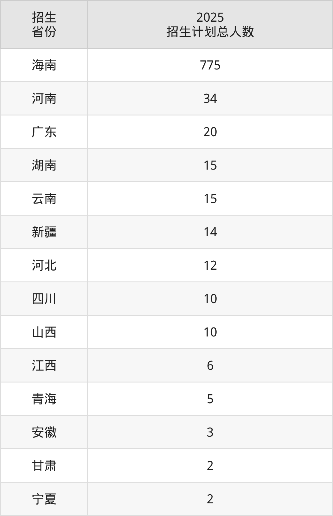 2025年海南经贸职业技术学院面向全国14个省市开展专科招生;招生专业共24个,招生人数共923人。2025年在海南省招生计划总人数是775人,其中,海南经贸职业技术学院在海南省招生人数最多的是现代物流管理。海南经贸职业技术学院在各省具体招生人数情况如下表。