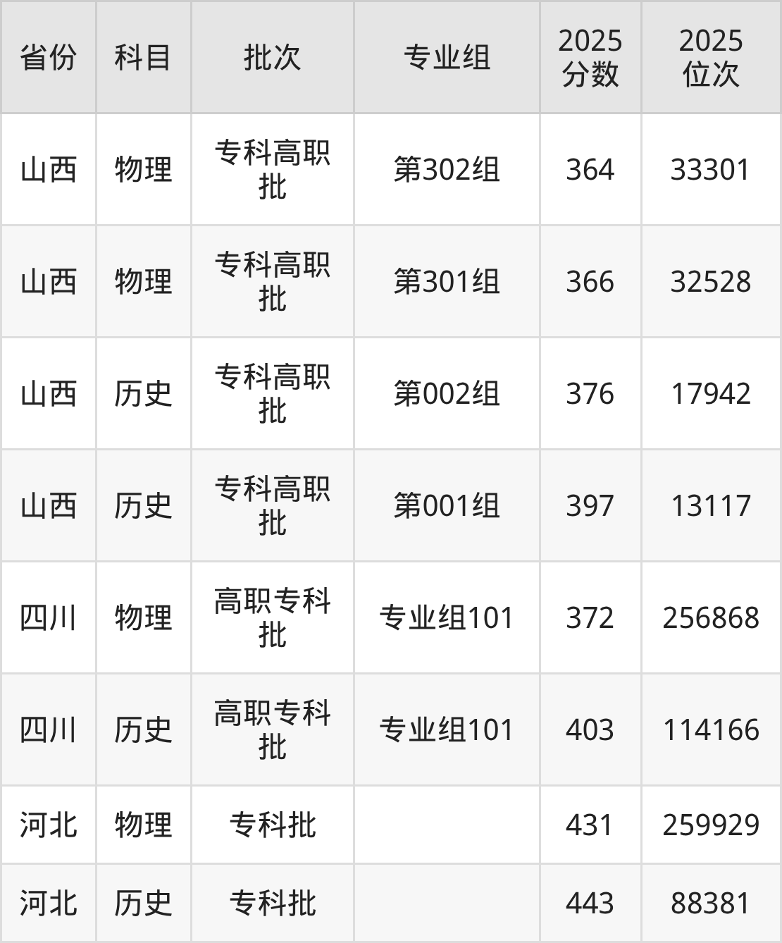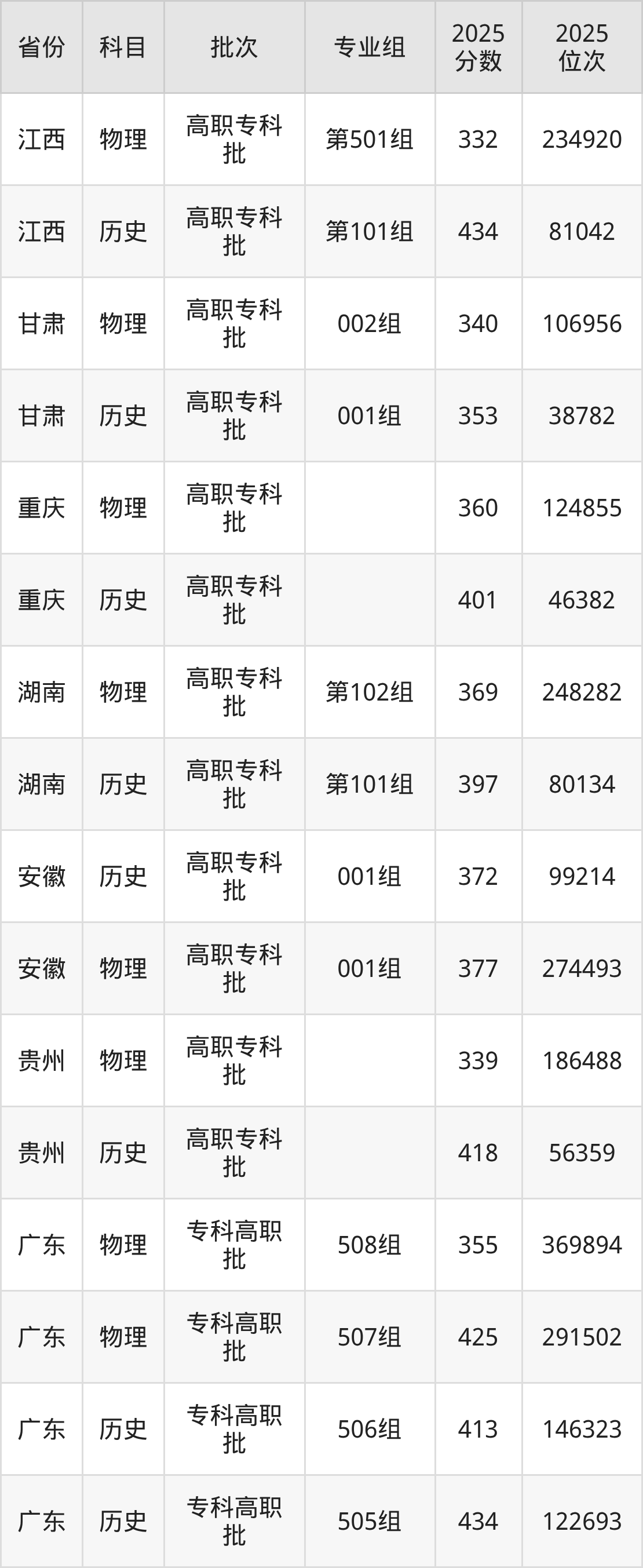 南昌健康职业技术学院专业组101:2025年投档录取最低分为403分,录取最低位次为114166名。