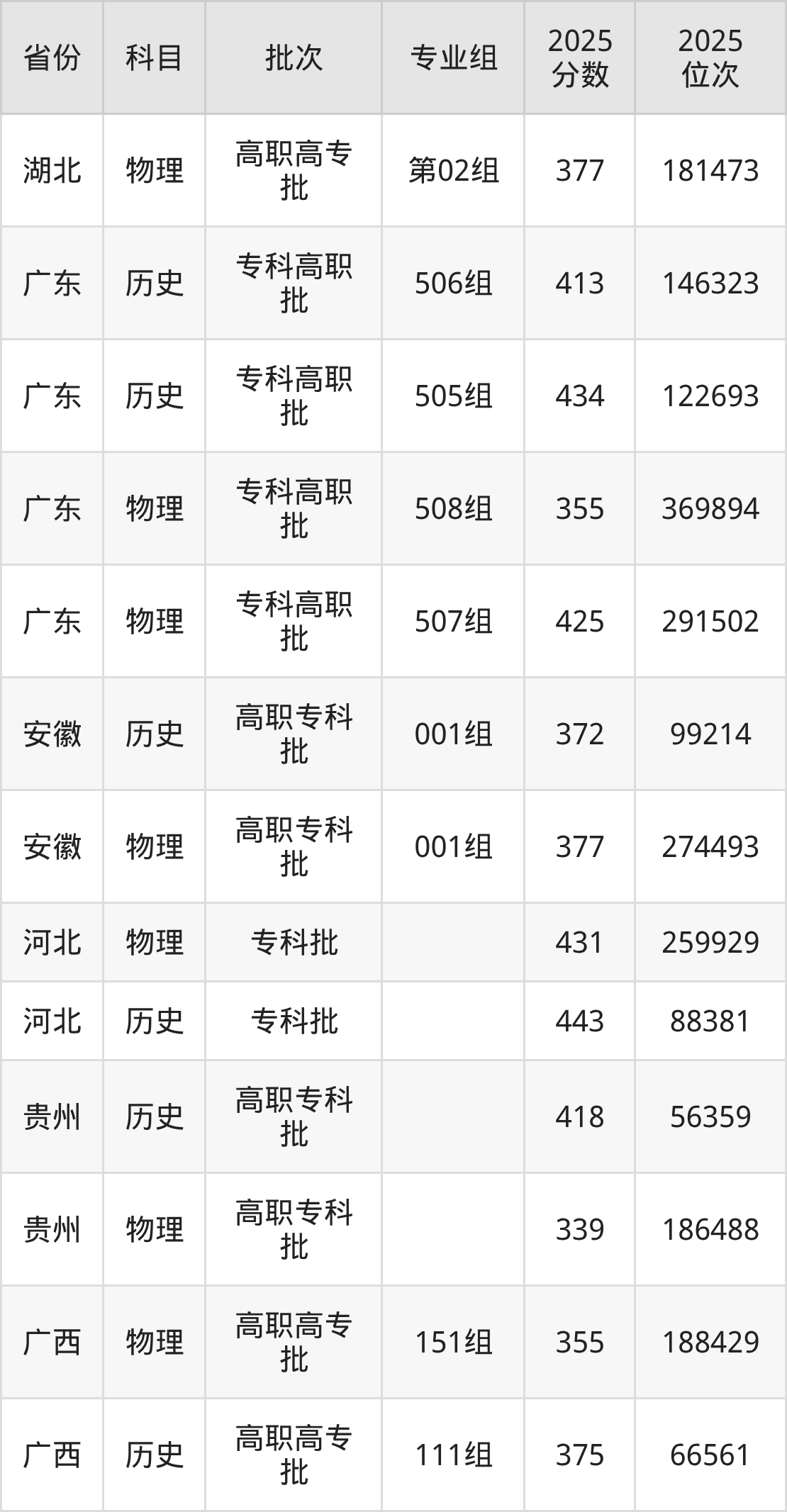 南昌健康职业技术学院第02组:2025年投档录取最低分为377分,录取最低位次为181473名。