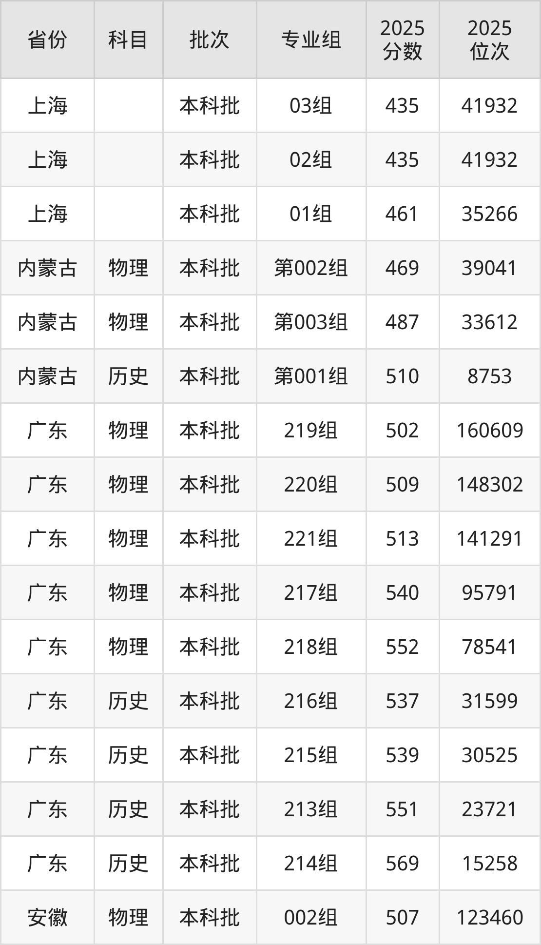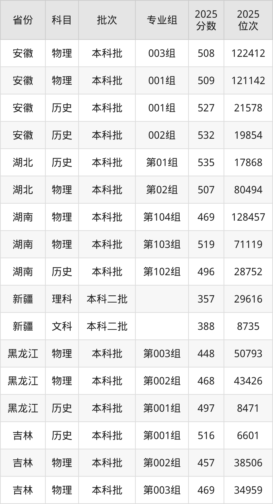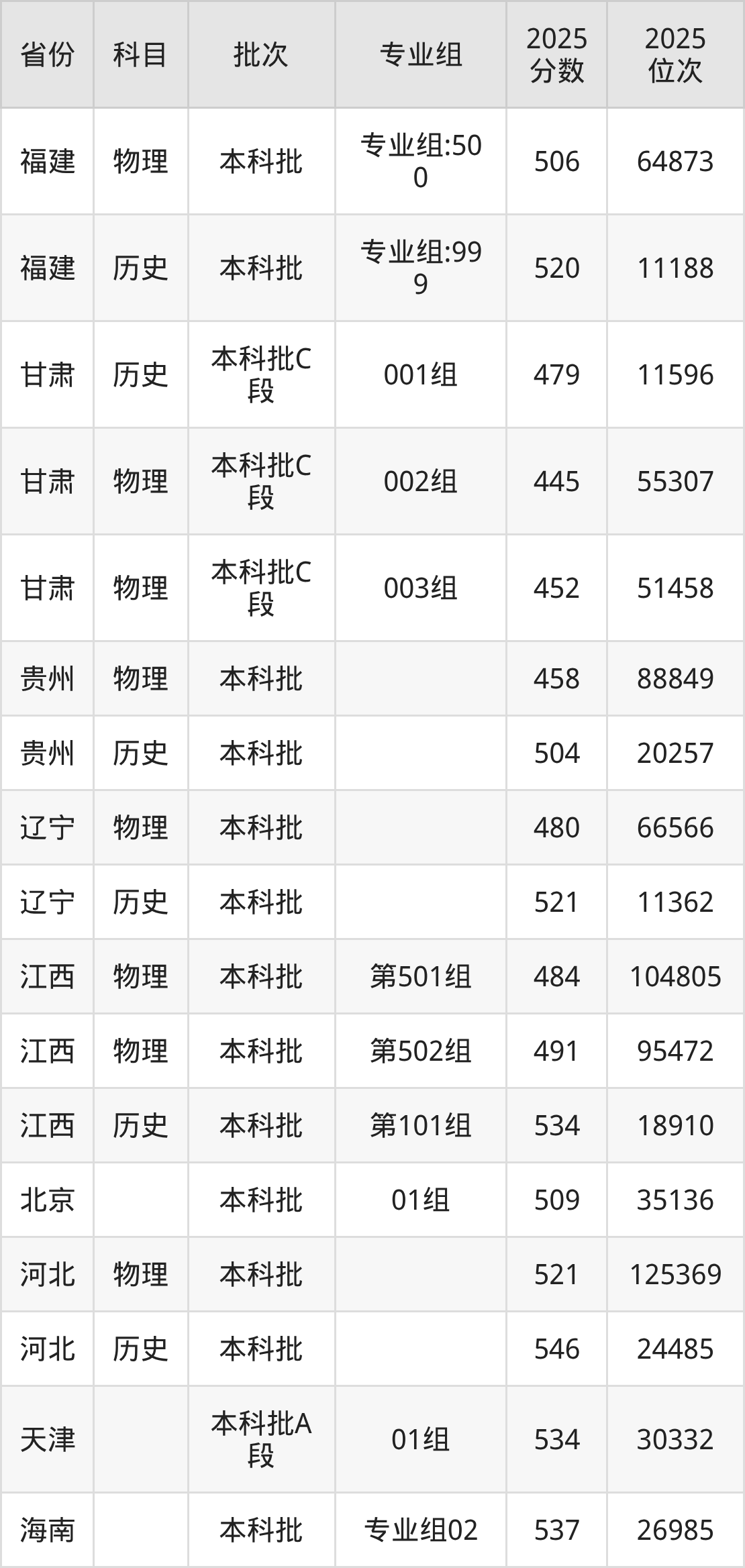2025年投档录取最低分为505分,录取最低位次为16516名。