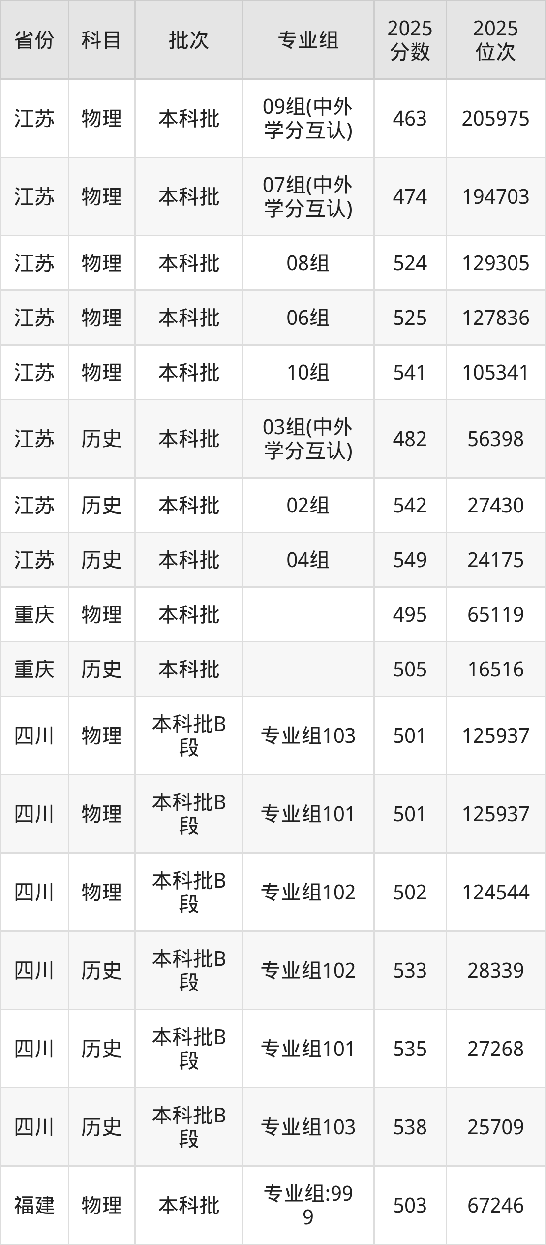 南京特殊教育师范学院09组(高校中外学分互认联合培养项目):2025年投档录取最低分为463分,录取最低位次为205975名。
