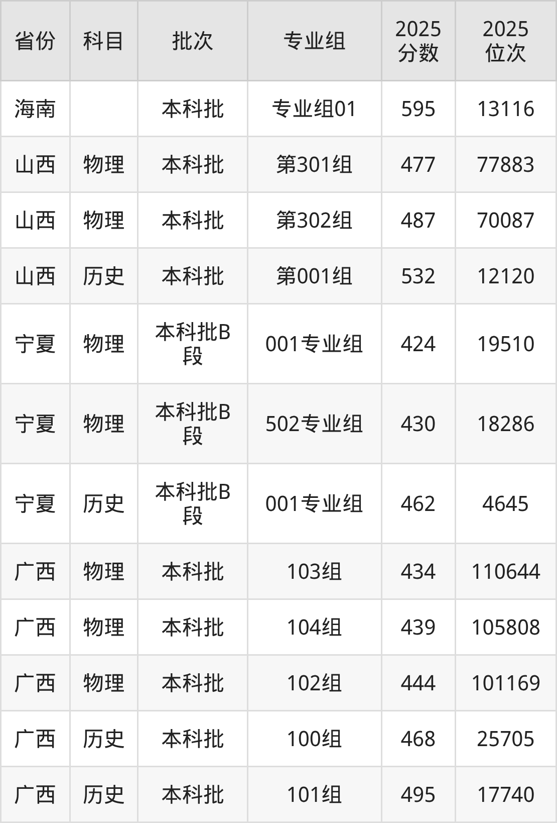 2025年投档录取最低分为495分,录取最低位次为65119名。