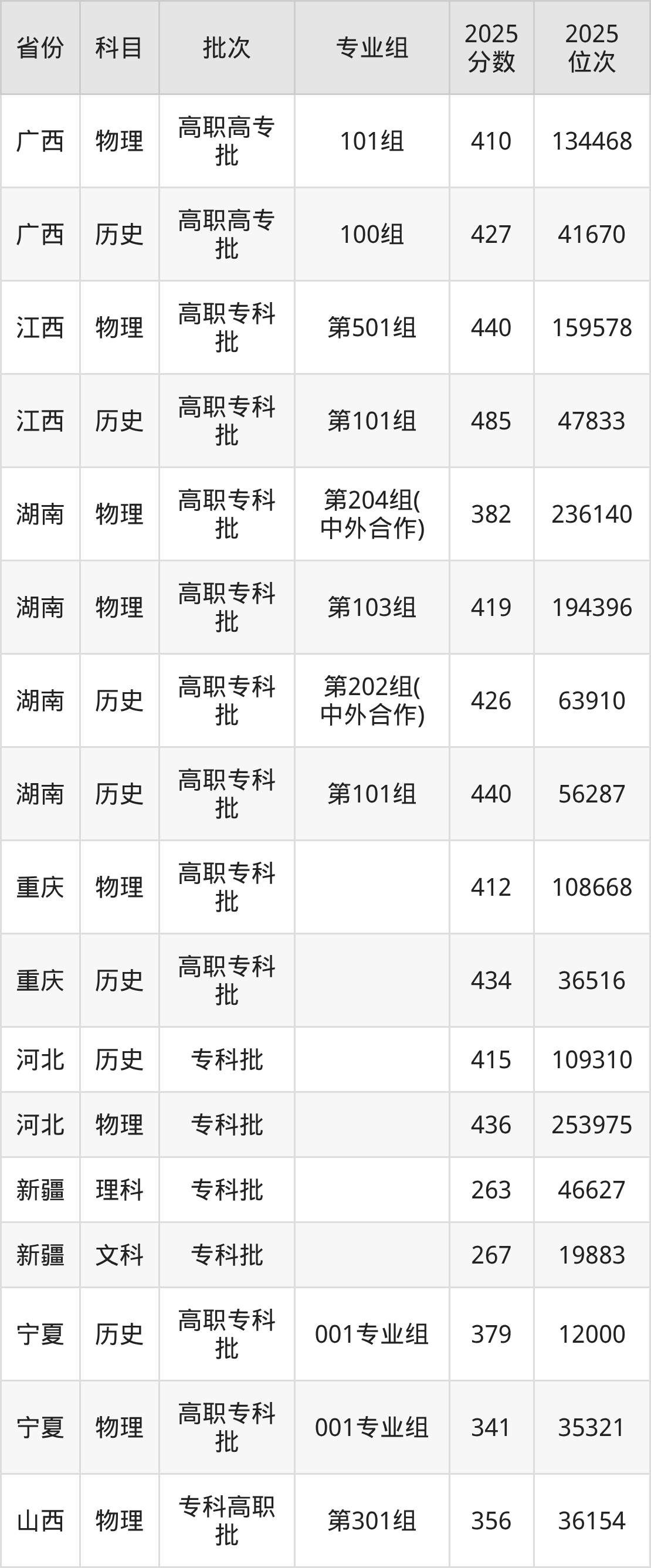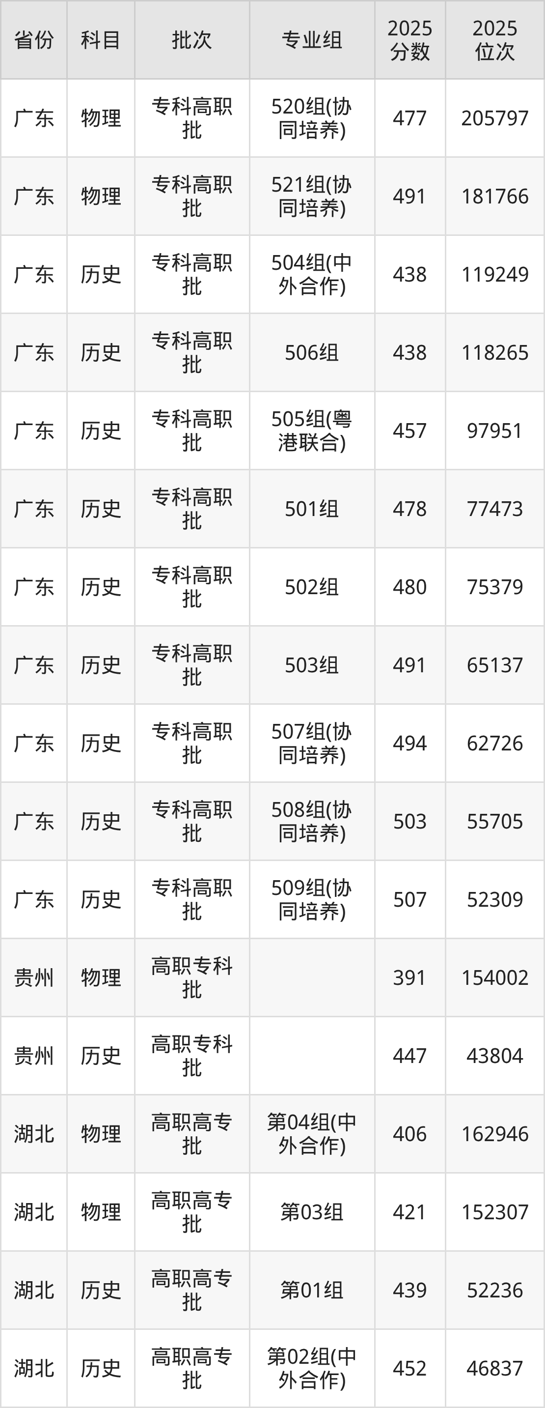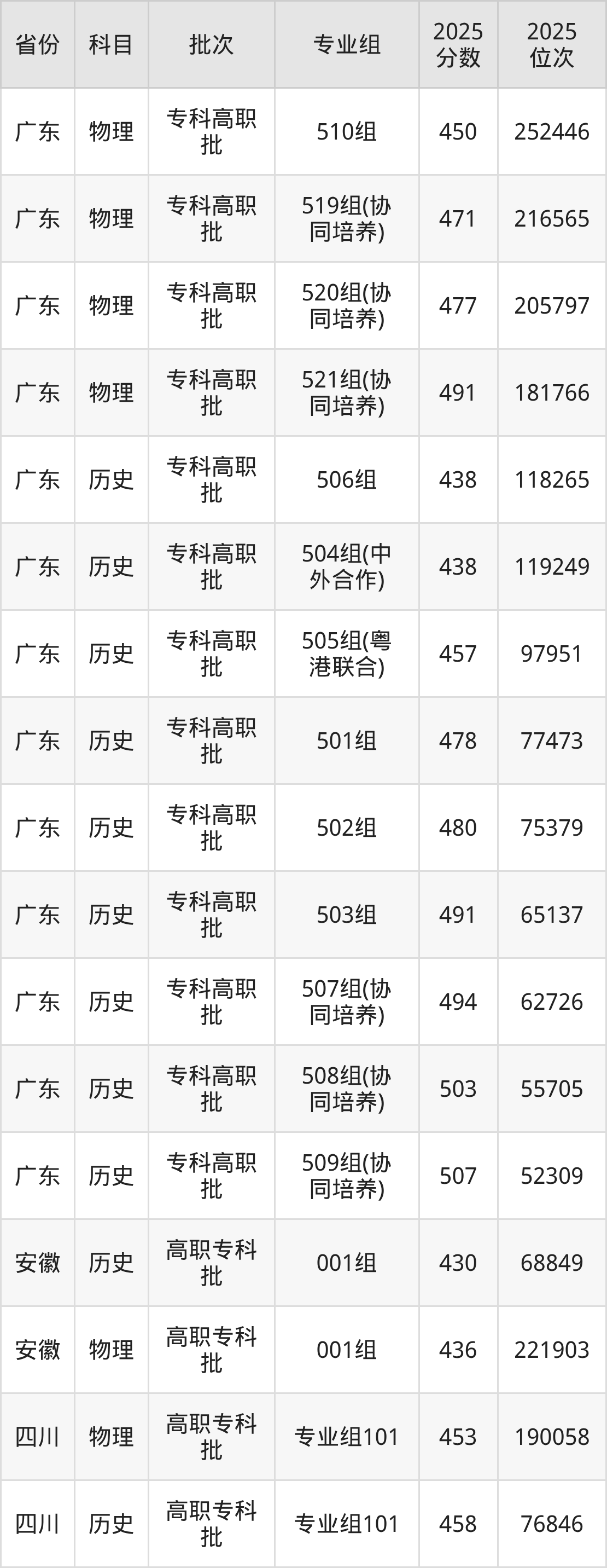 下面是2025年广东科学技术职业学院全国录取分数线一览表,请查阅。