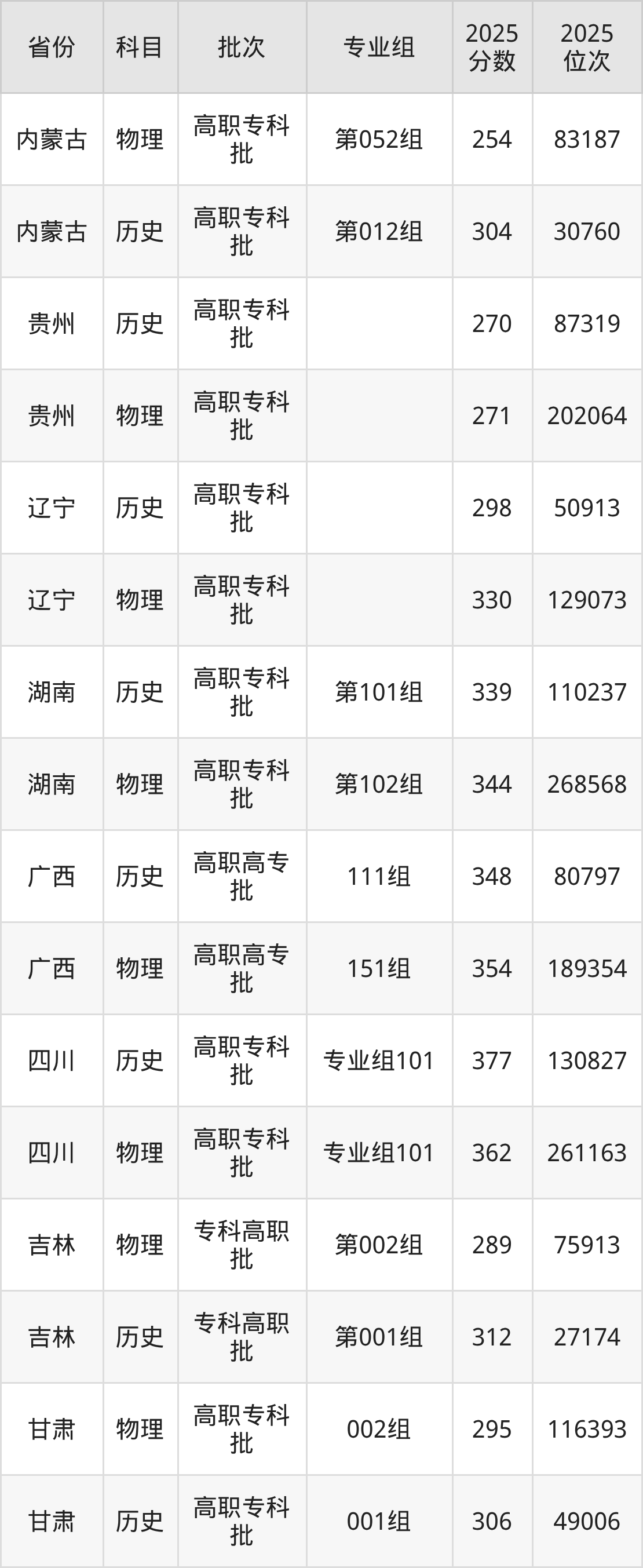 柳州城市职业学院第012组:2025年投档录取最低分为304分,录取最低位次为30760名。