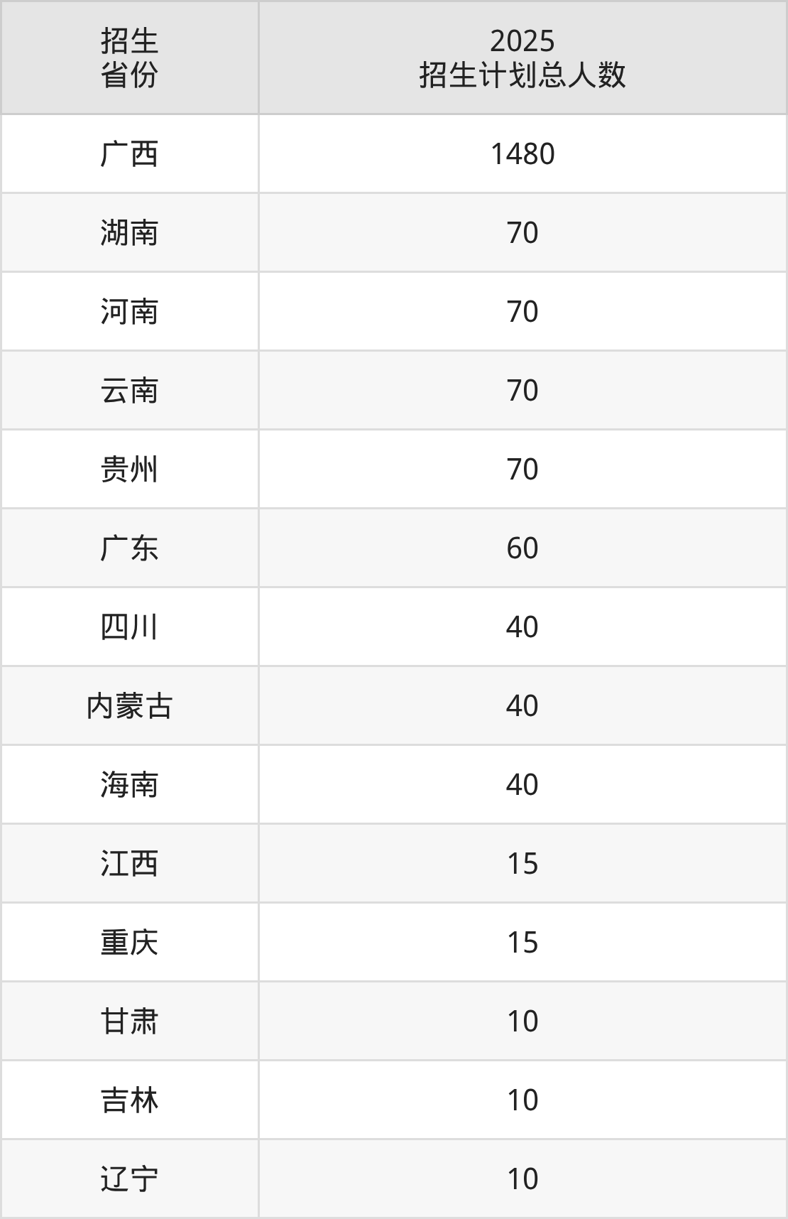 2025年柳州城市职业学院面向全国14个省市开展专科招生;招生专业共40个,招生人数共2000人。2025年在广西壮族自治区招生计划总人数是1480人,其中,柳州城市职业学院在广西壮族自治区招生人数最多的是小学教育。柳州城市职业学院在各省具体招生人数情况如下表。
