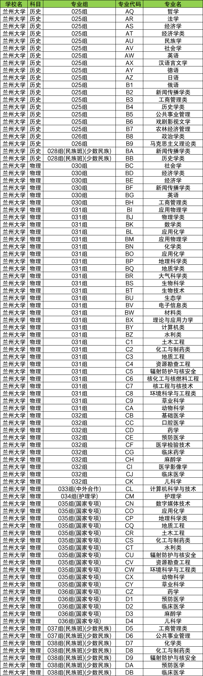 下面是2025年兰州大学本科批C段所有专业代号一览表,供参考: