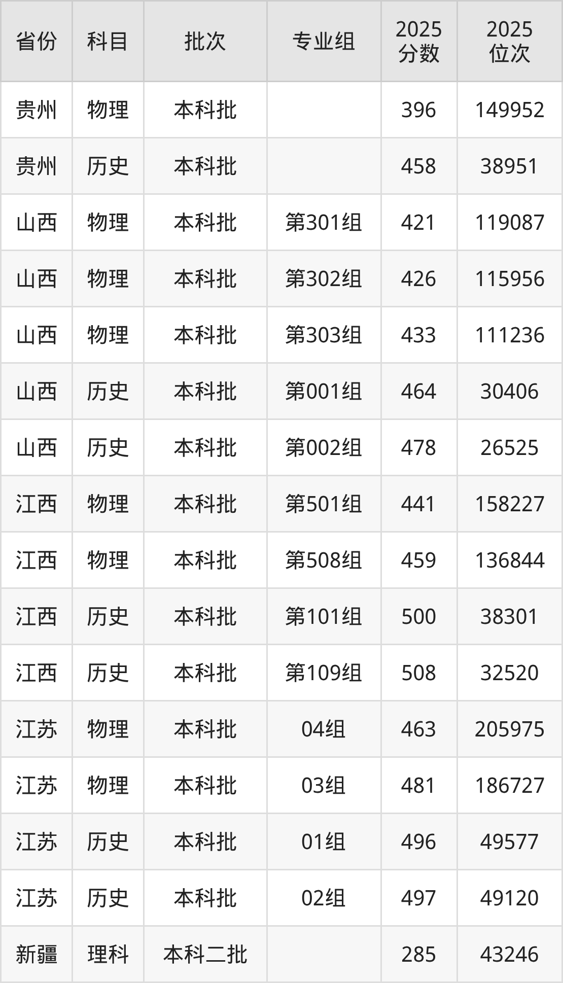 2025年投档录取最低分为285分,录取最低位次为43246名。