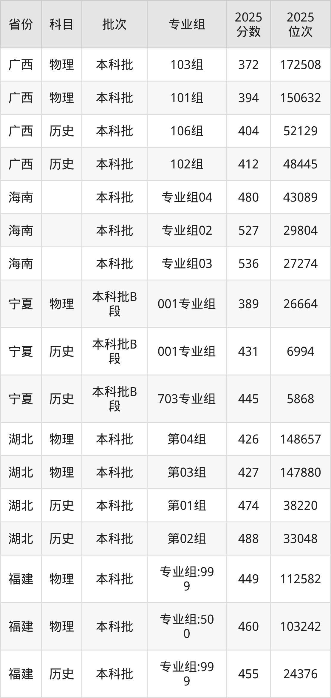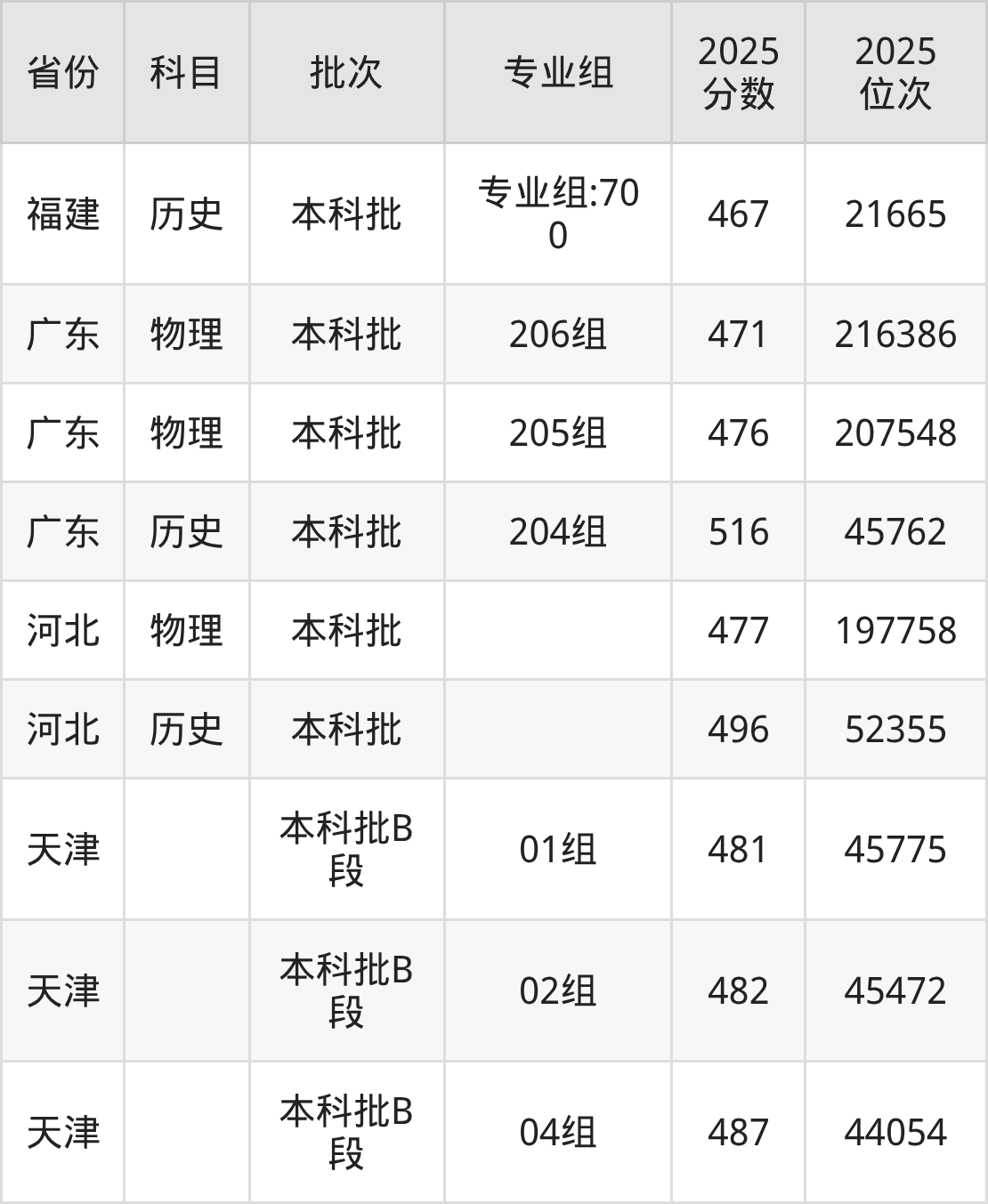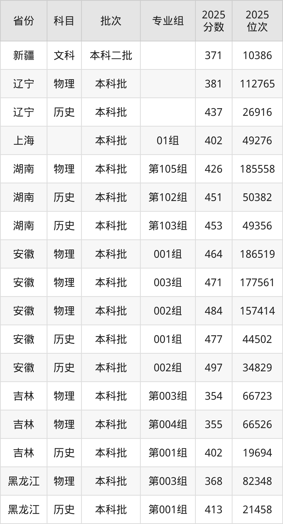 2025年投档录取最低分为371分,录取最低位次为10386名。