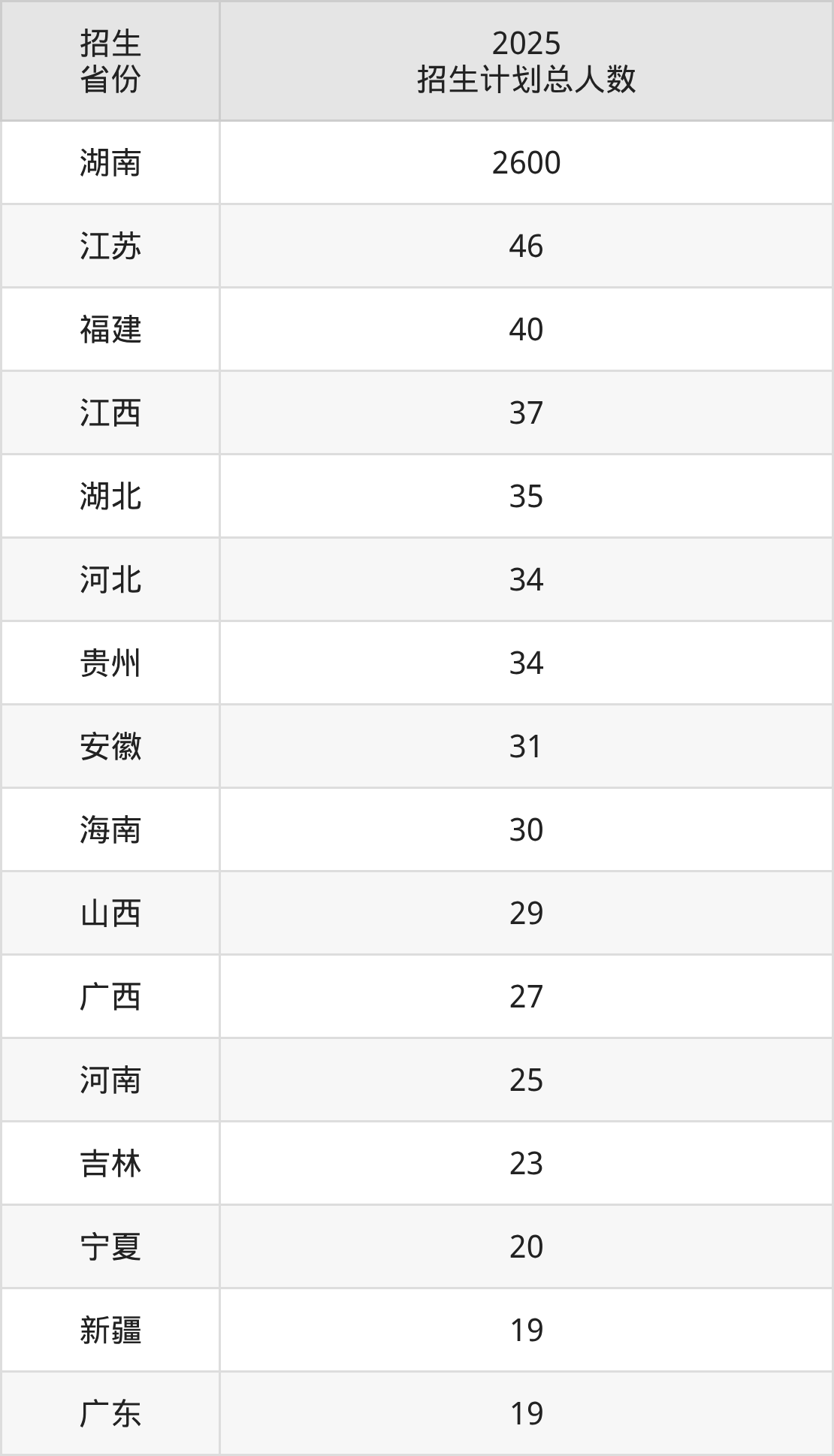2025年岳阳学院面向全国21个省市开展本科招生;招生专业共18个,招生人数共3109人。2025年在湖南省招生计划总人数是2600人,其中,岳阳学院在湖南省招生人数最多的是机械设计制造及其自动化。岳阳学院在各省具体招生人数情况如下表。