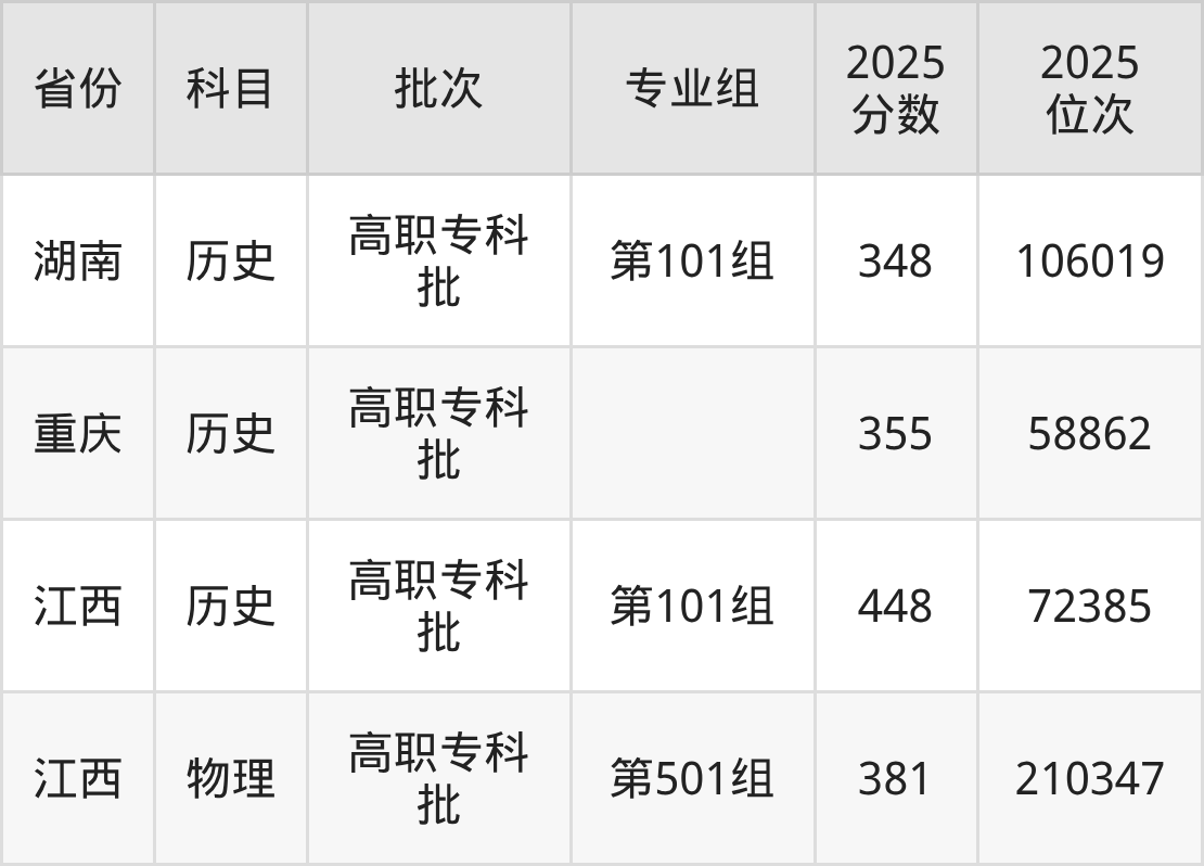 江汉艺术职业学院001组:2025年投档录取最低分为343分,录取最低位次为293359名。