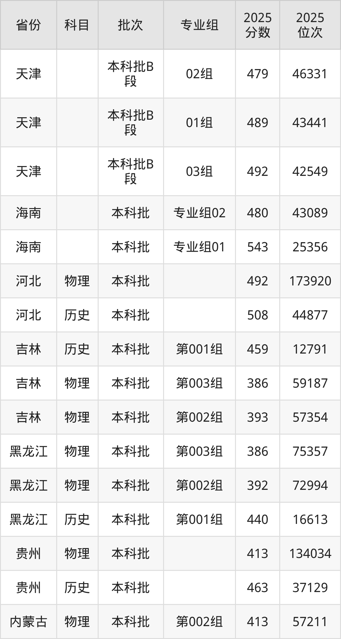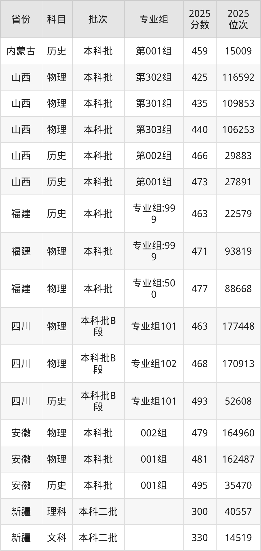 2025年投档录取最低分为465分,录取最低位次为21324名。