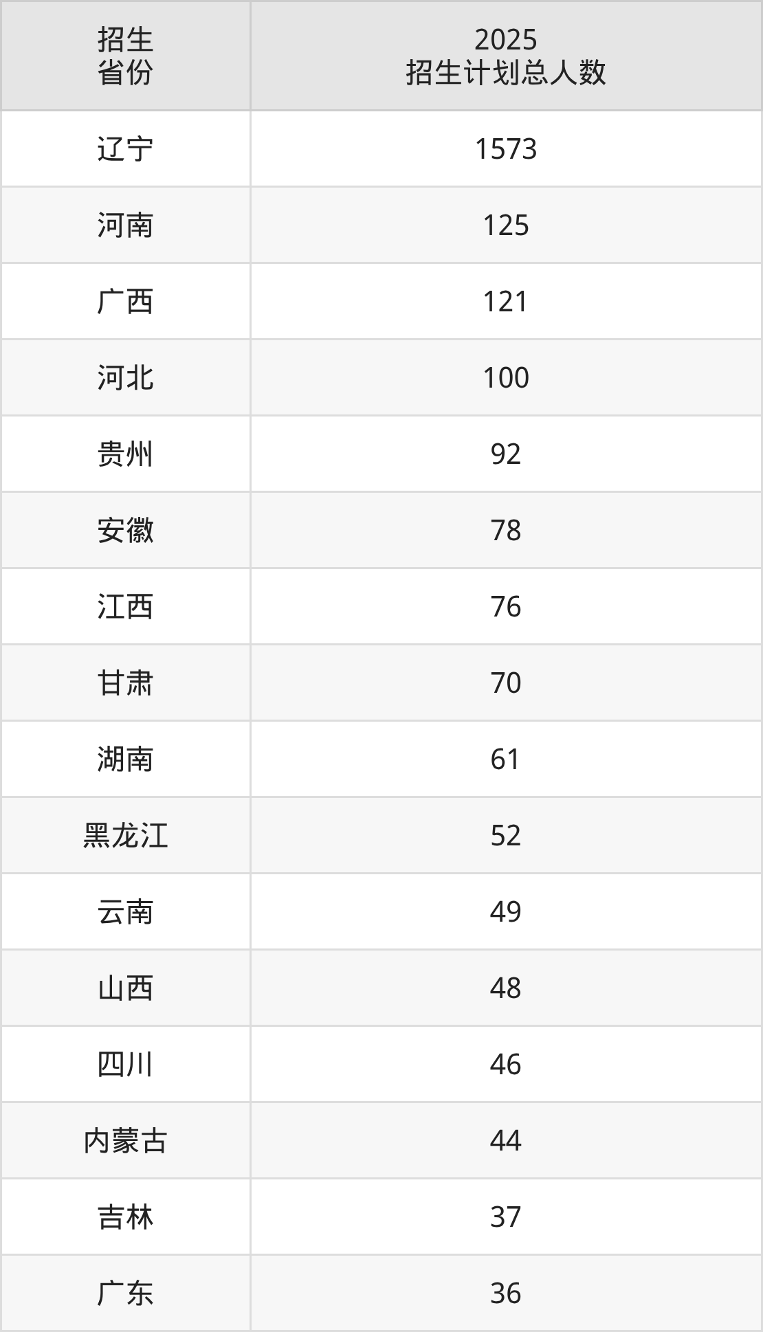 2025年沈阳建筑大学面向全国28个省市开展本科招生;招生专业共39个,招生人数共2851人。2025年在辽宁省招生计划总人数是1573人,其中,沈阳建筑大学在辽宁省招生人数最多的是土木工程。沈阳建筑大学在各省具体招生人数情况如下表。