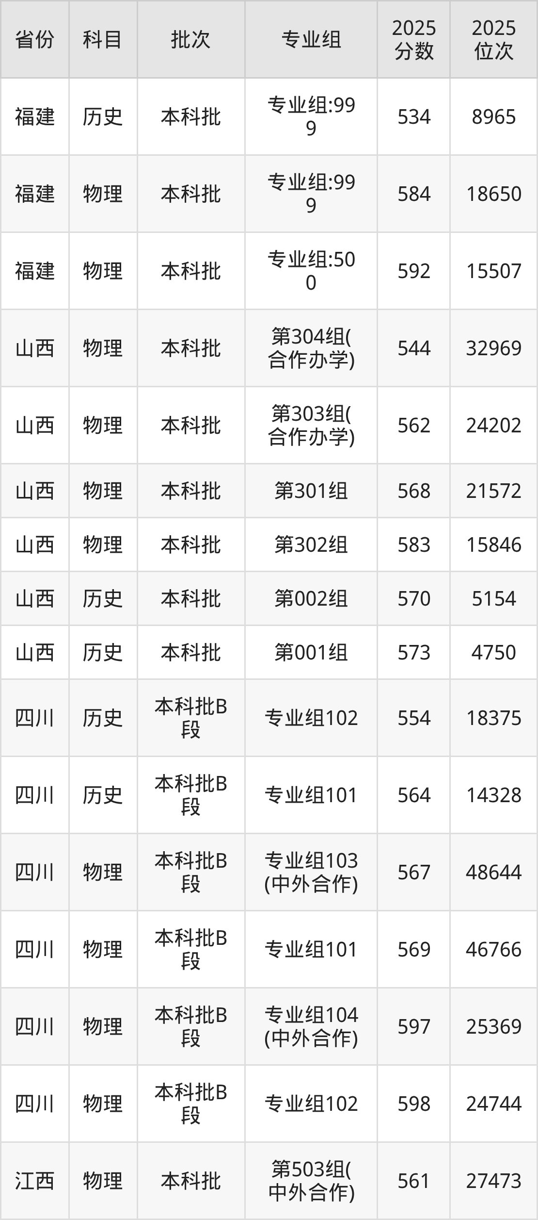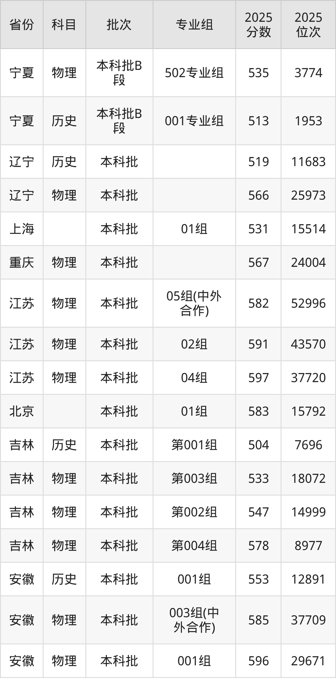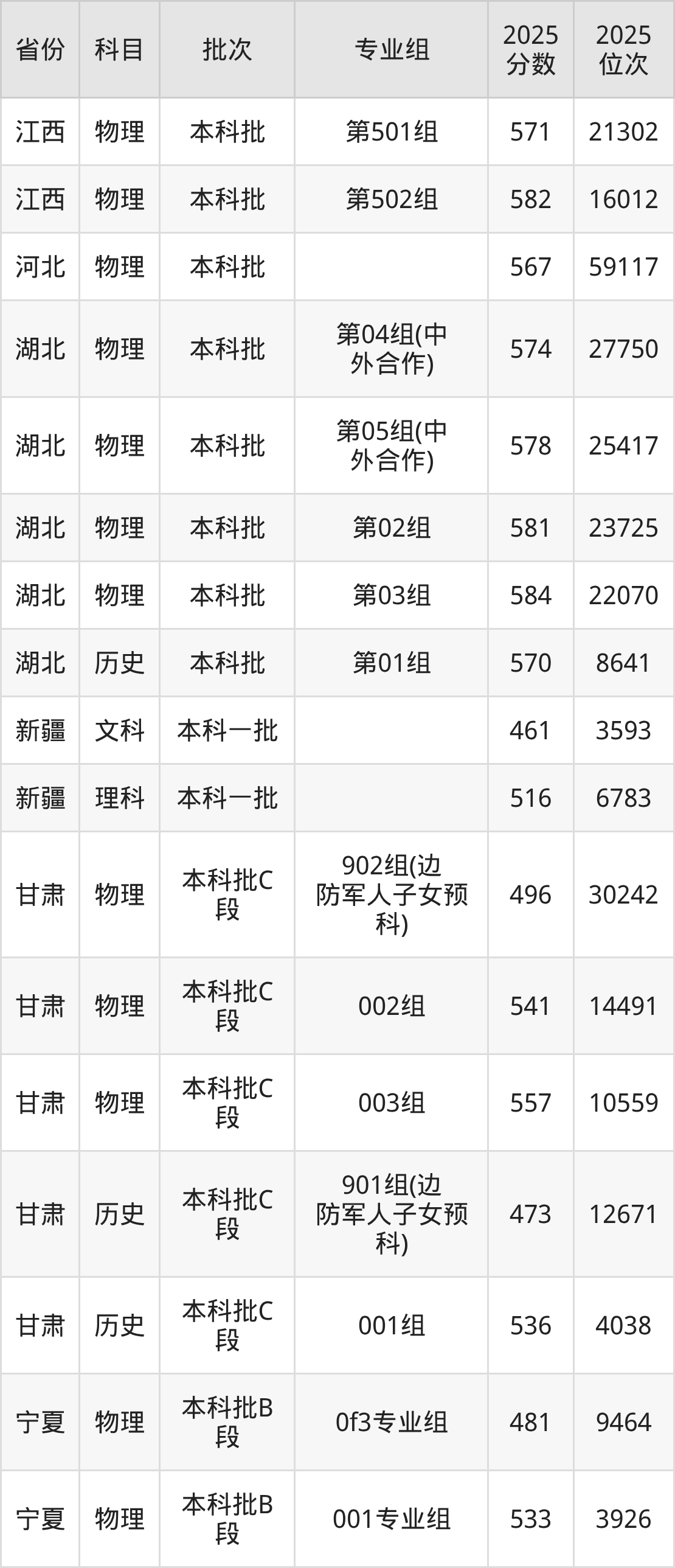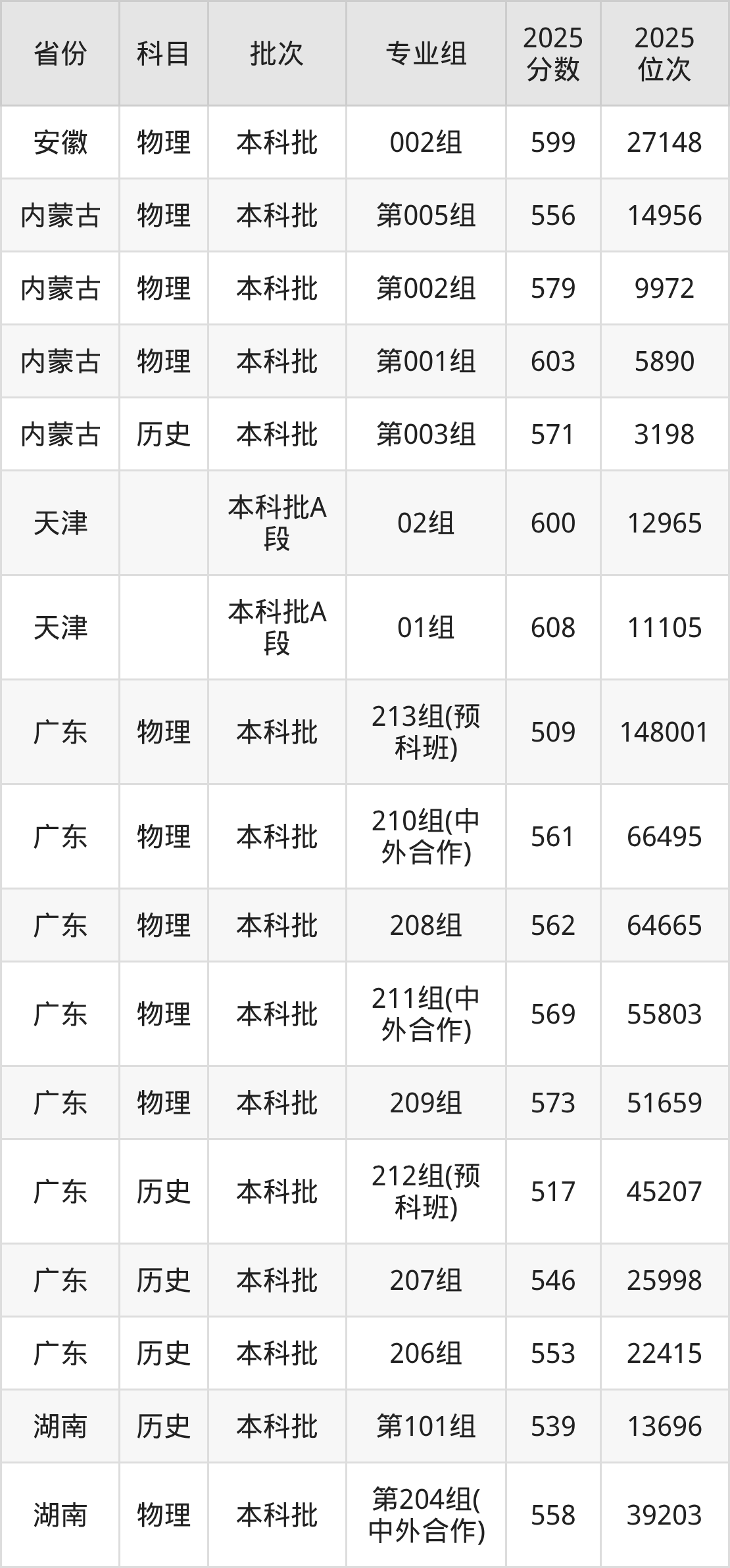 2025年在本科物理类进行招生,各专业组分数线详情如下: