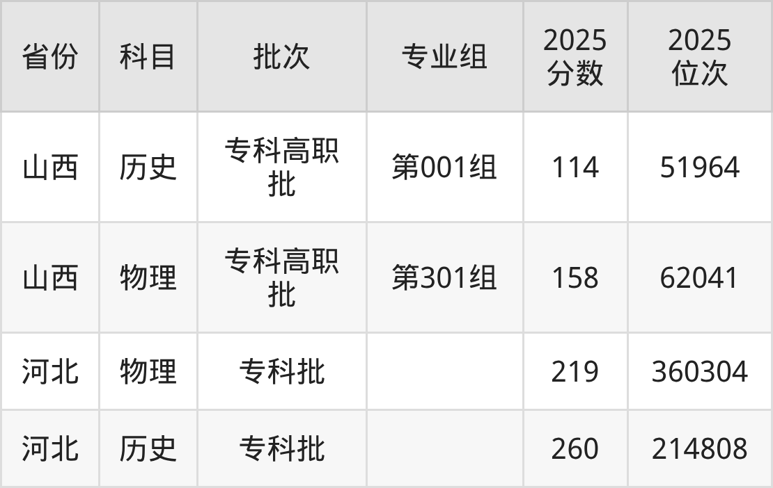 山西信息职业技术学院第301组:2025年投档录取最低分为158分,录取最低位次为62041名。