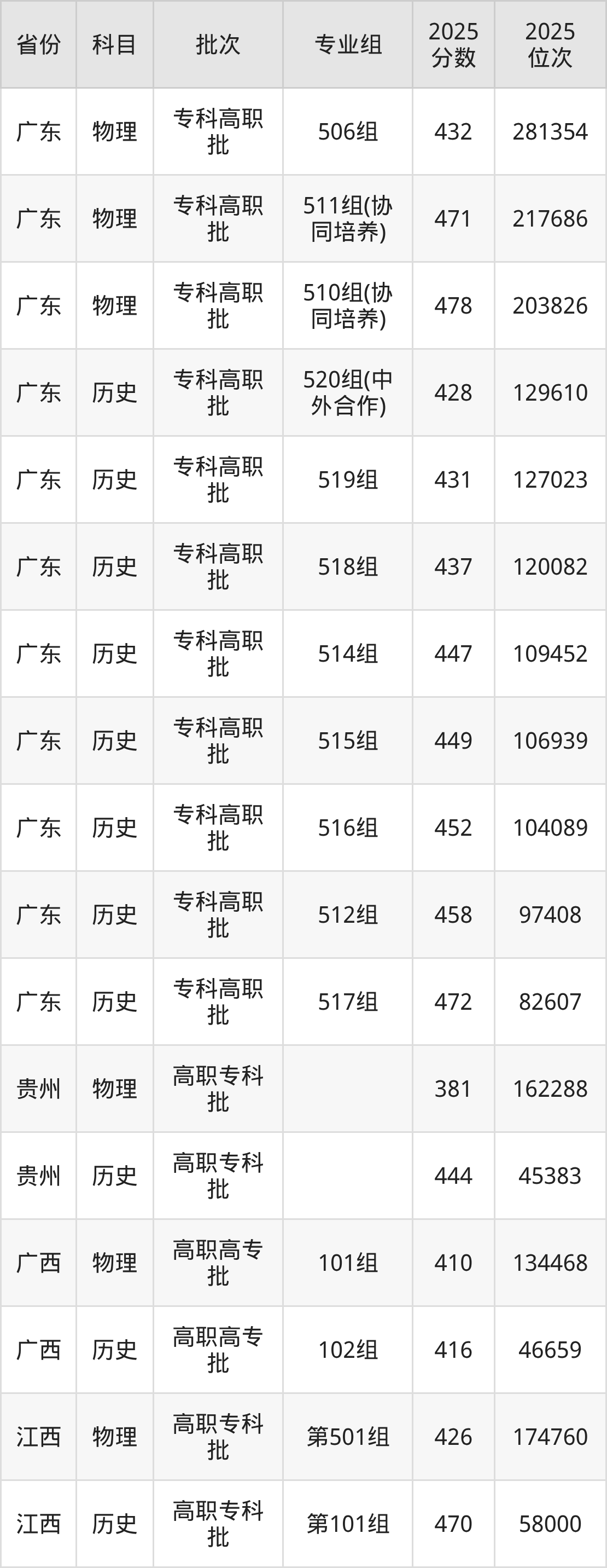 下面是2025年广东理工职业学院全国录取分数线一览表,请查阅。