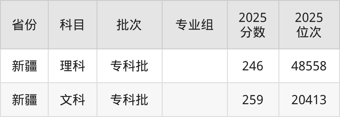 2025年投档录取最低分为259分,录取最低位次为20413名。