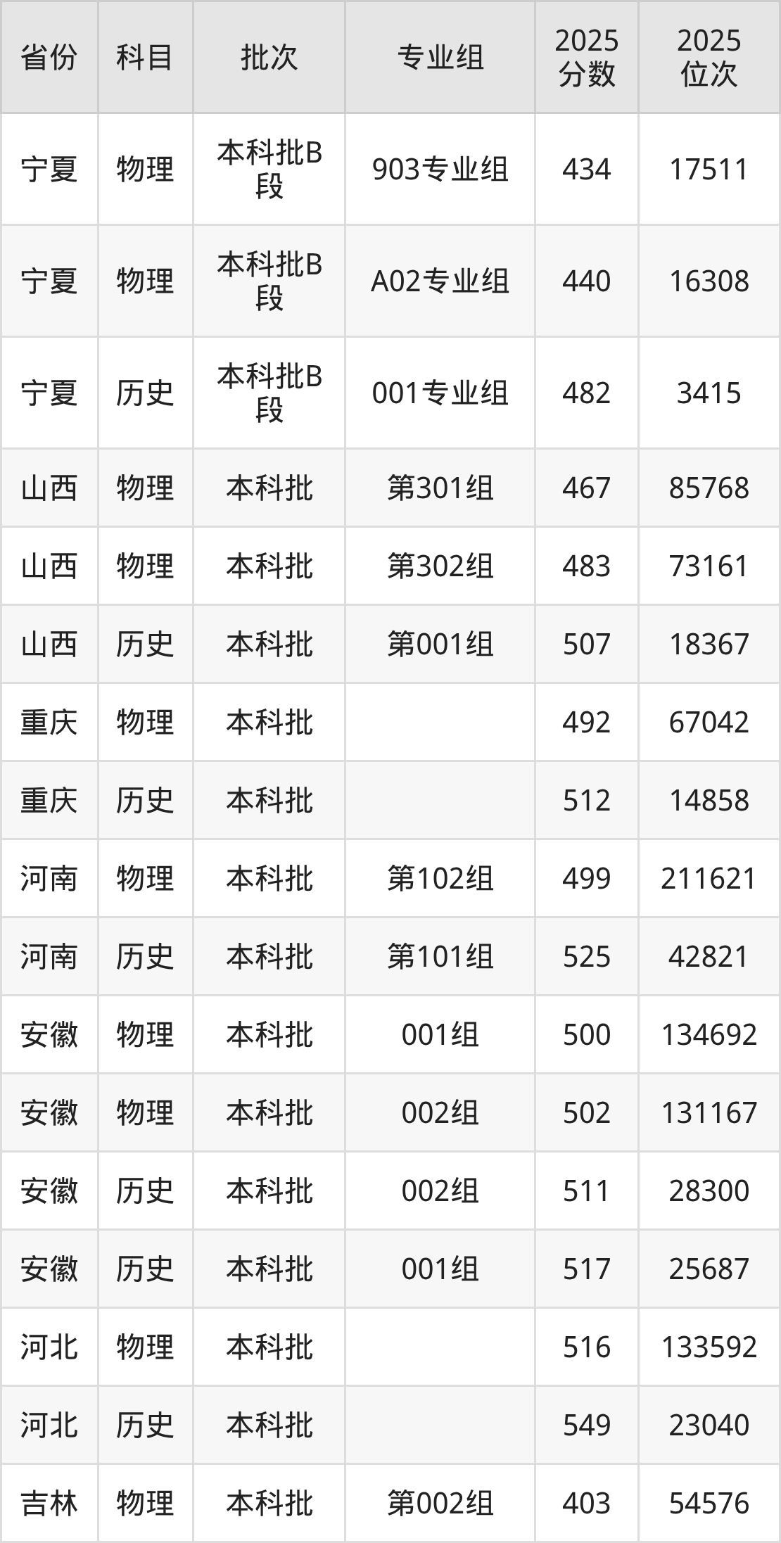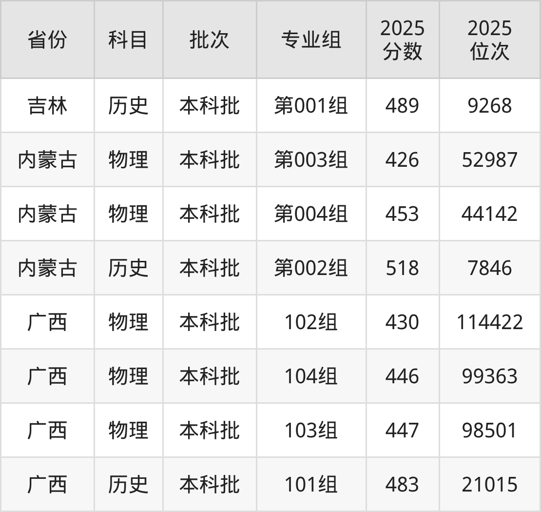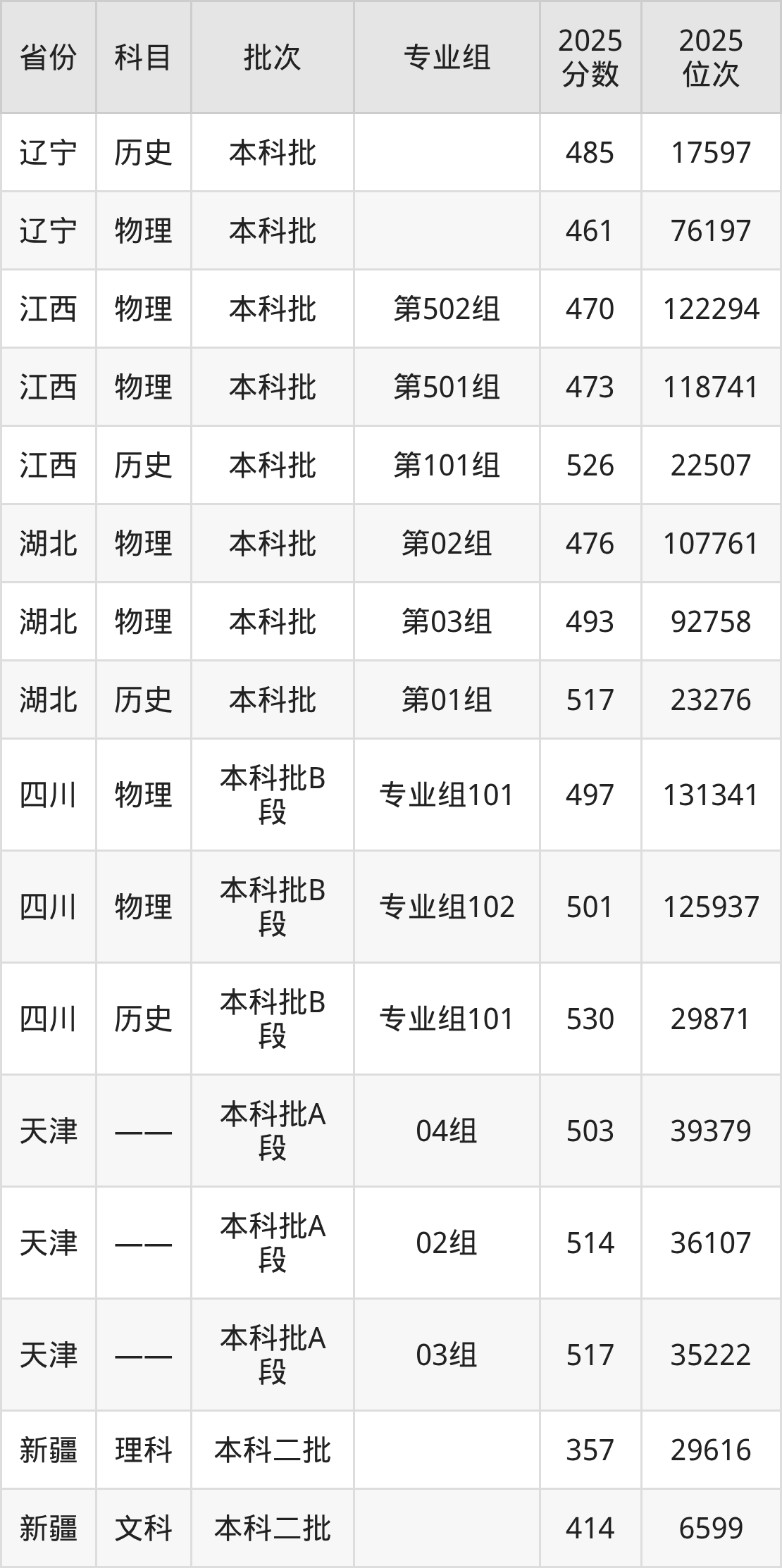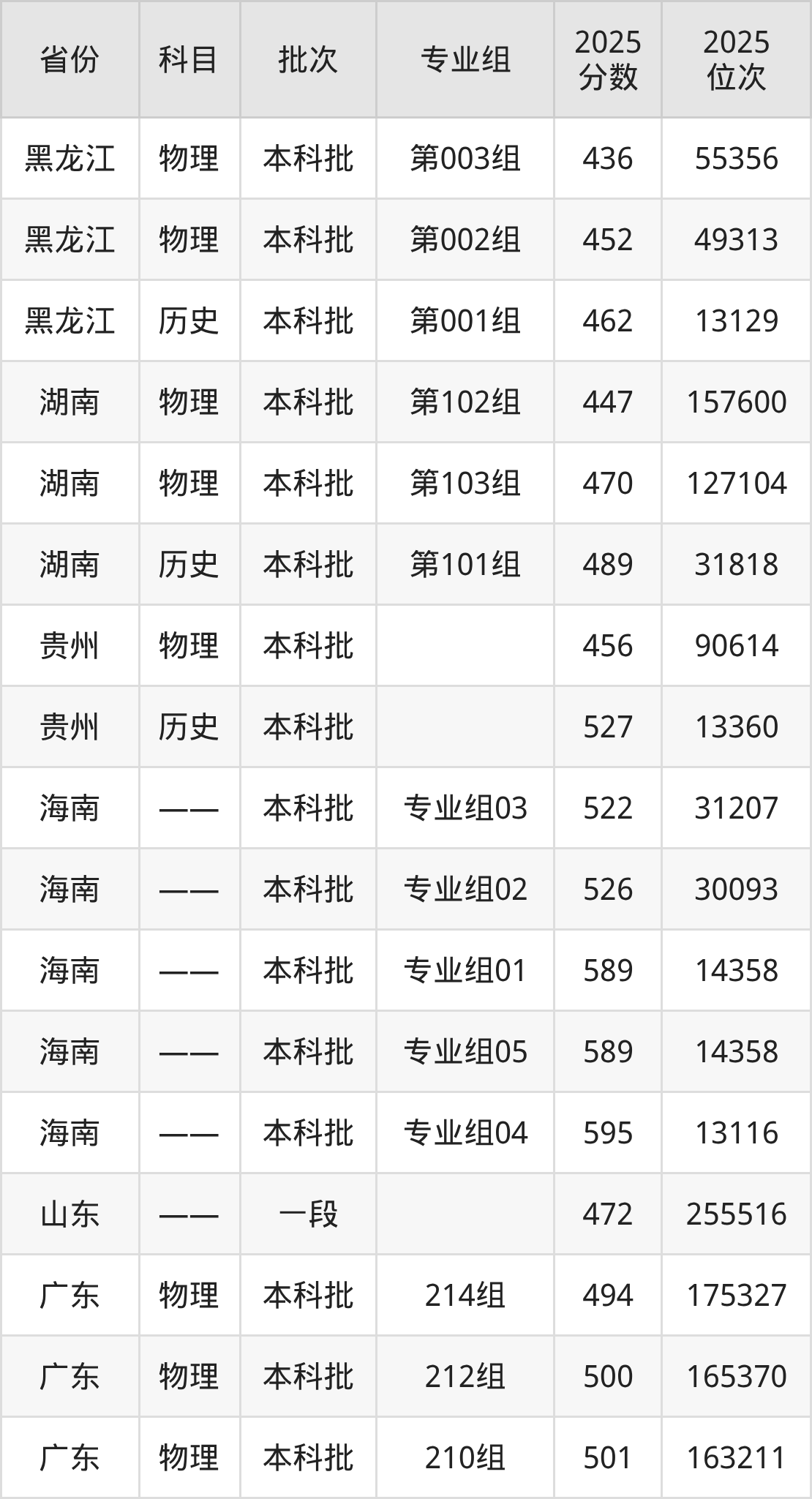 2025年投档录取最低分为492分,录取最低位次为67042名。