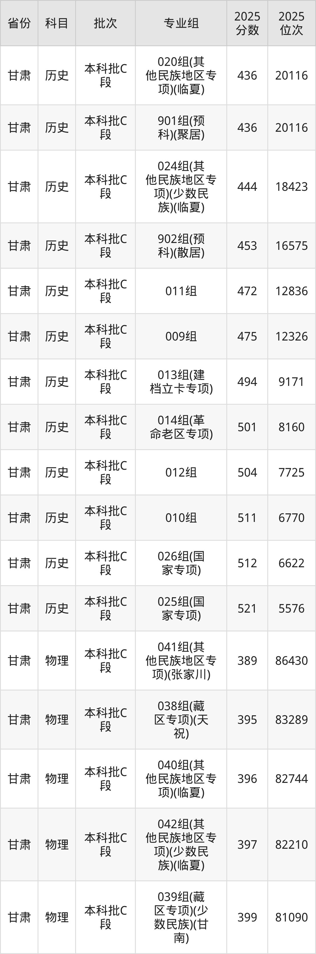天水师范大学020专业组(其他民族地区专项)(临夏):2025年投档录取最低分为436分,录取最低位次为20116名。