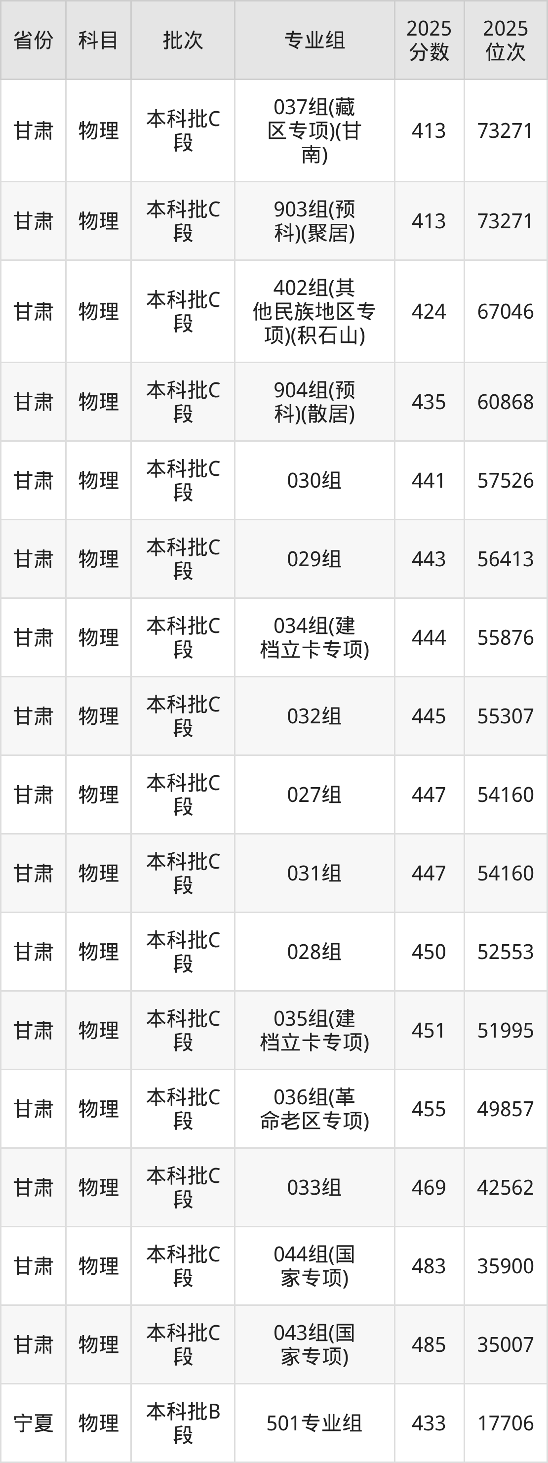 天水师范大学037专业组(藏区专项)(甘南):2025年投档录取最低分为413分,录取最低位次为73271名。