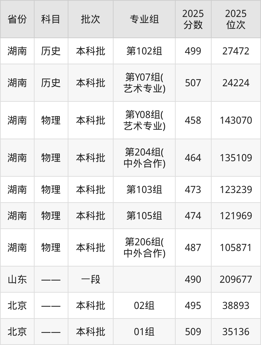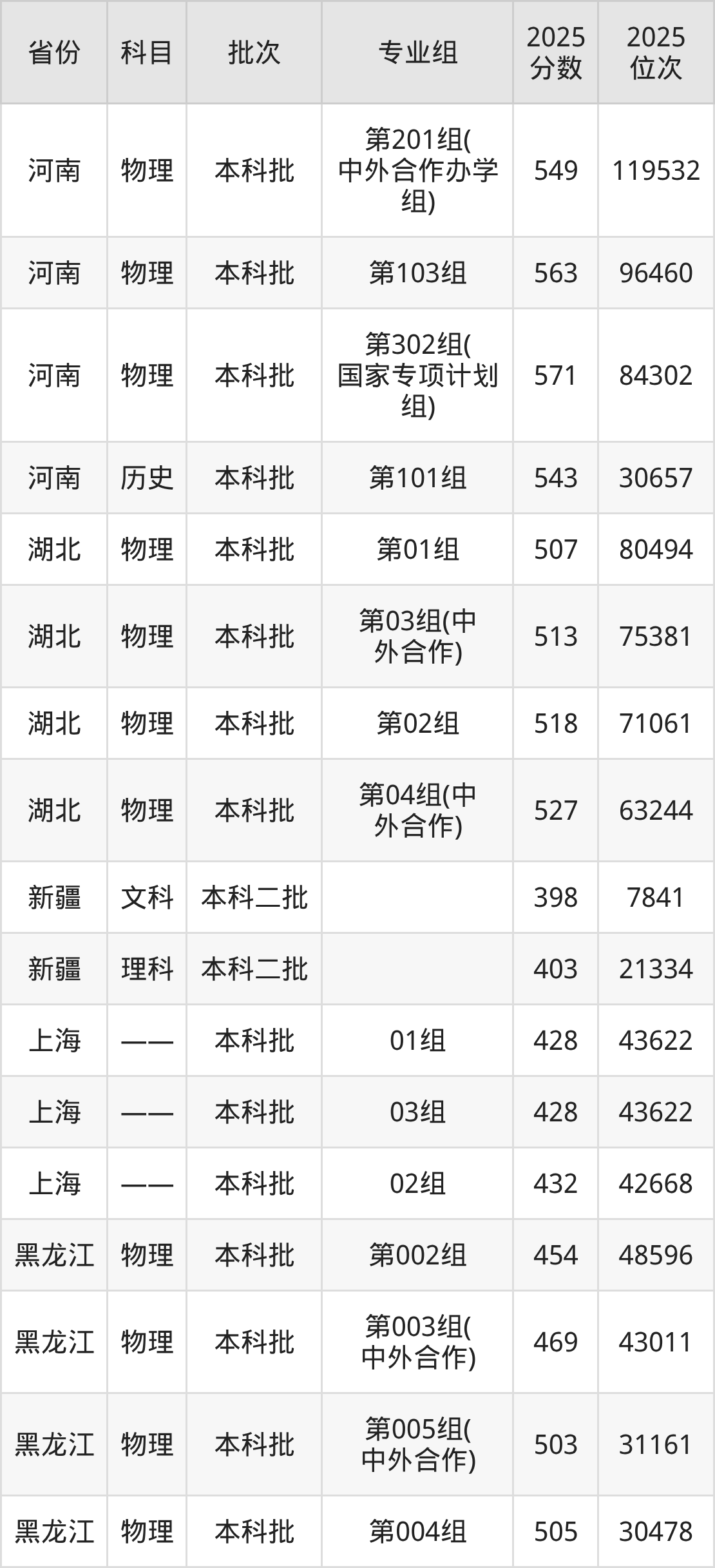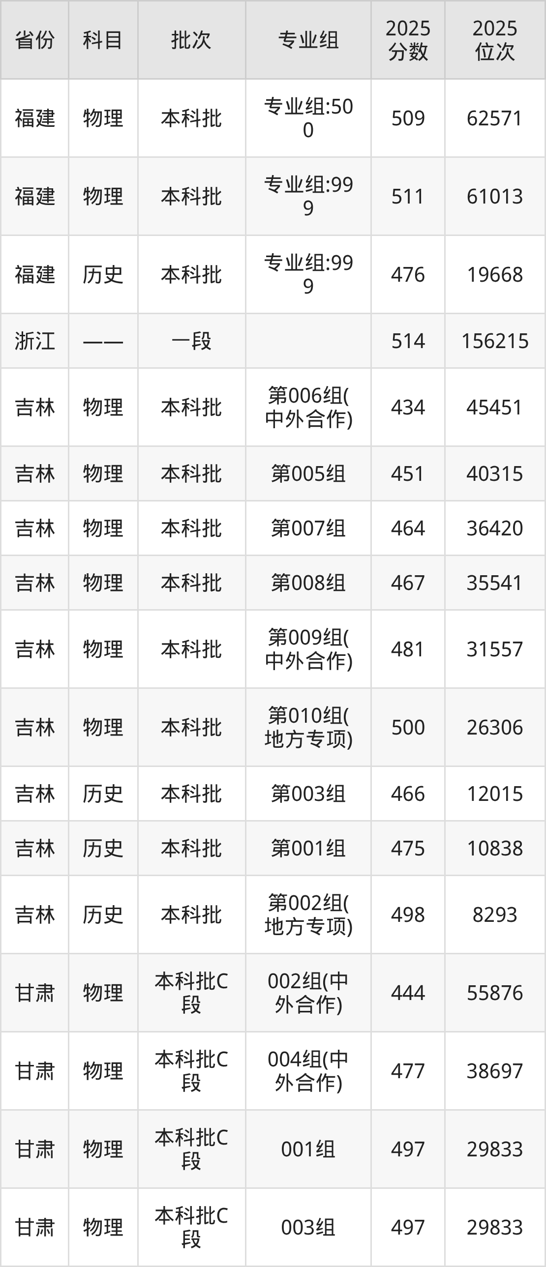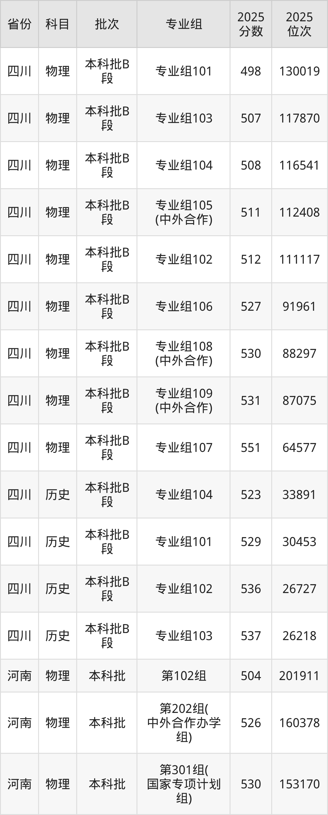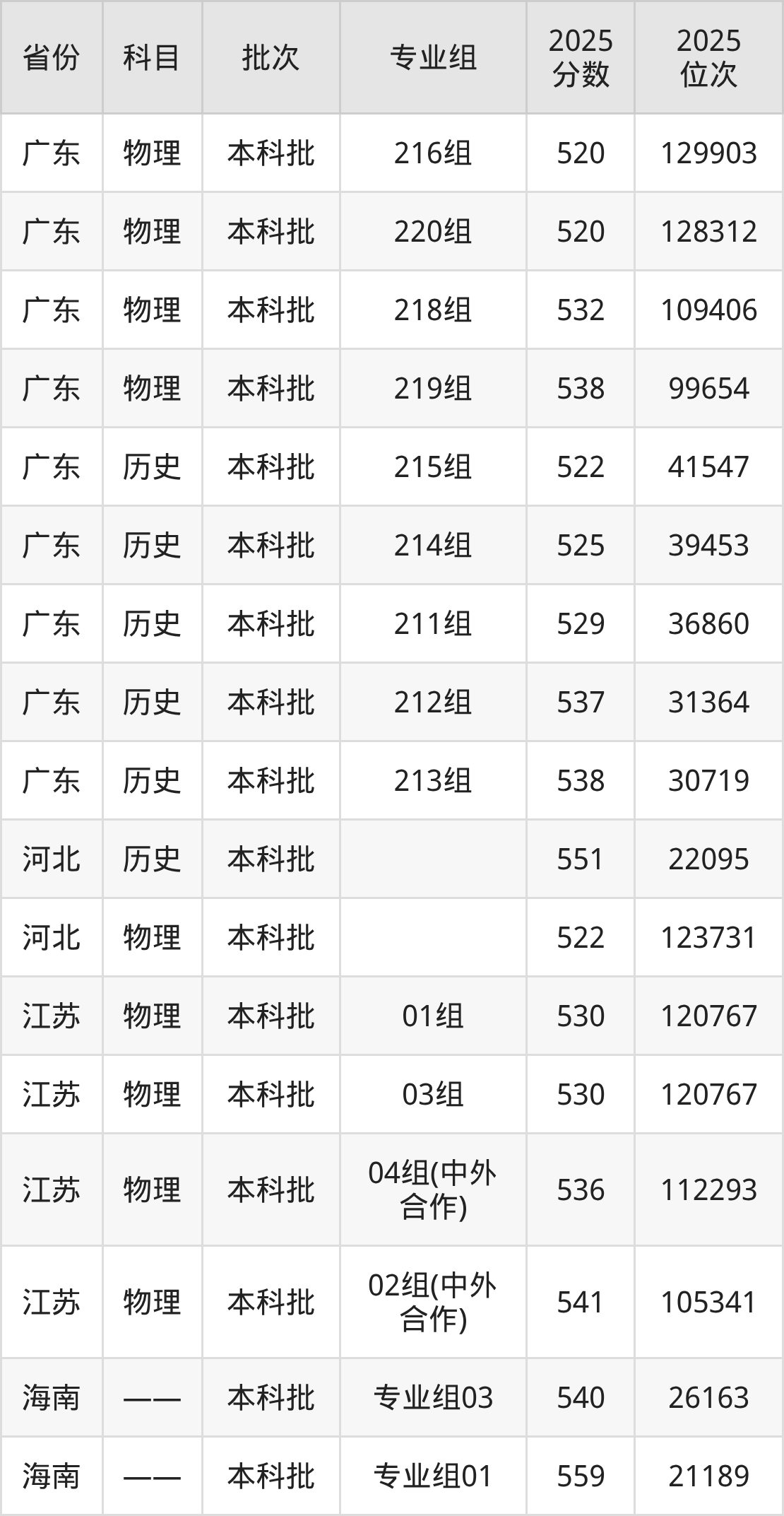 2025年在本科物理类进行招生,各专业组分数线详情如下: