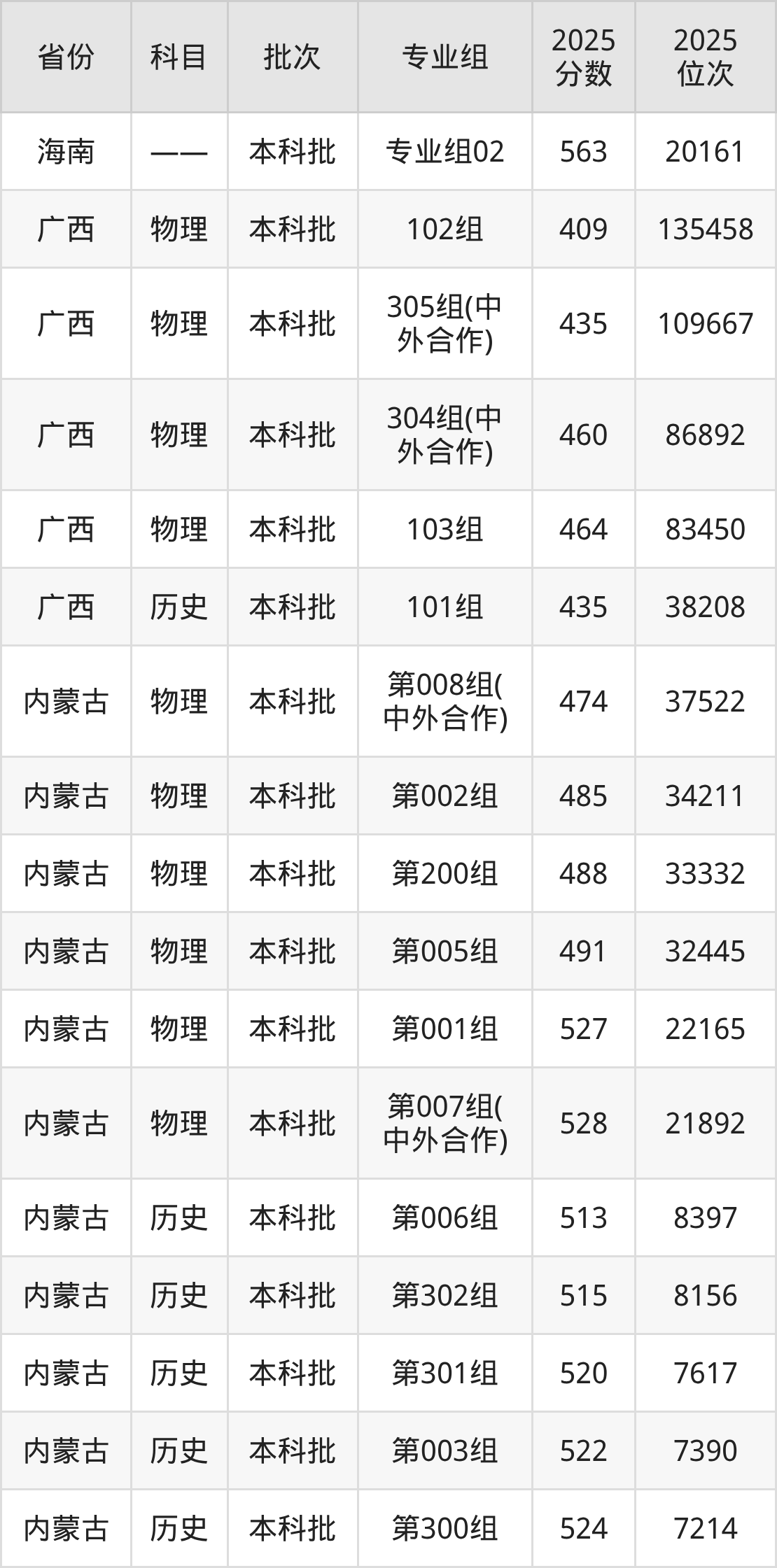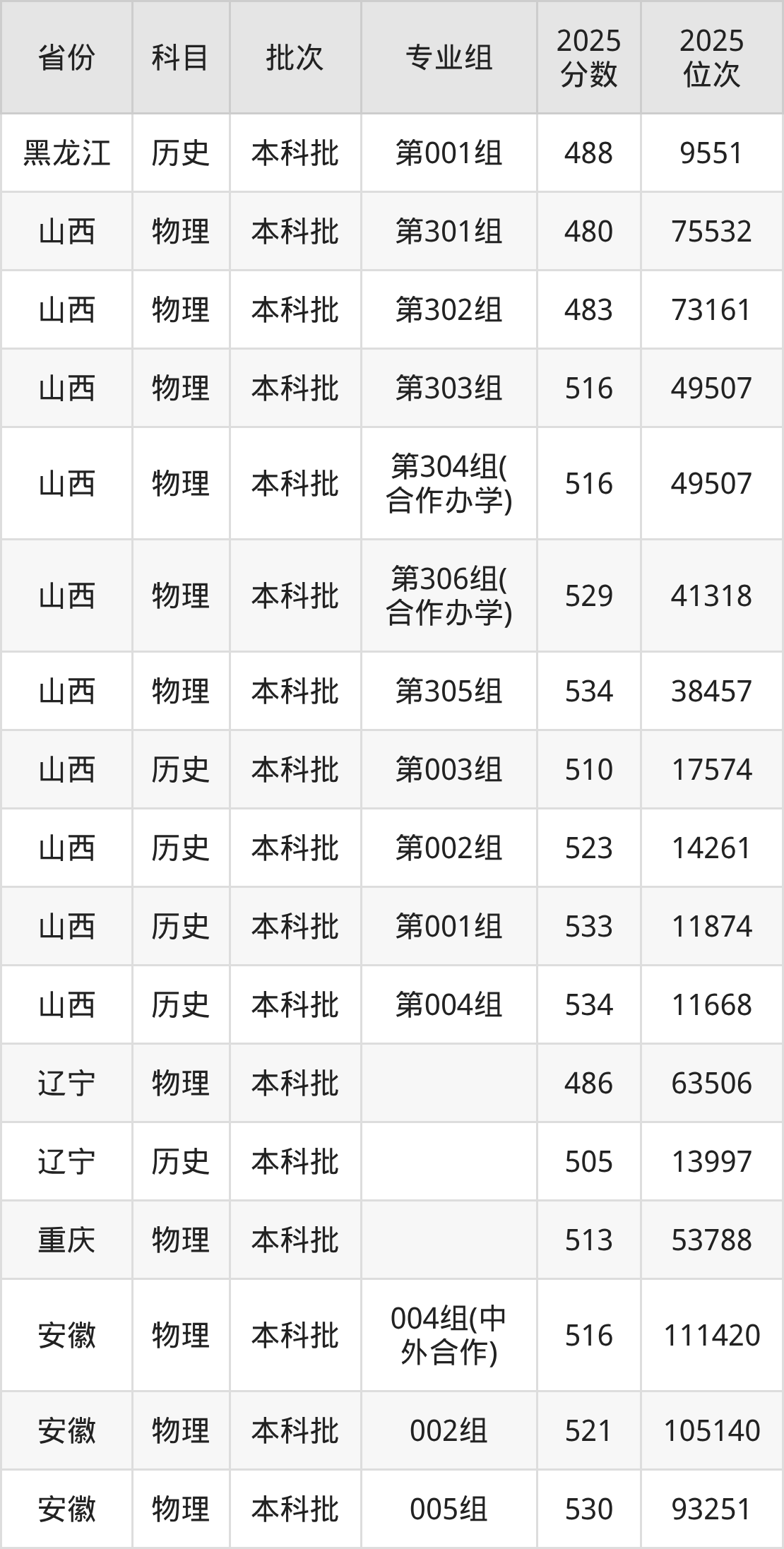 长春工业大学第007组(中外合作):2025年投档录取最低分为528分,录取最低位次为21892名。