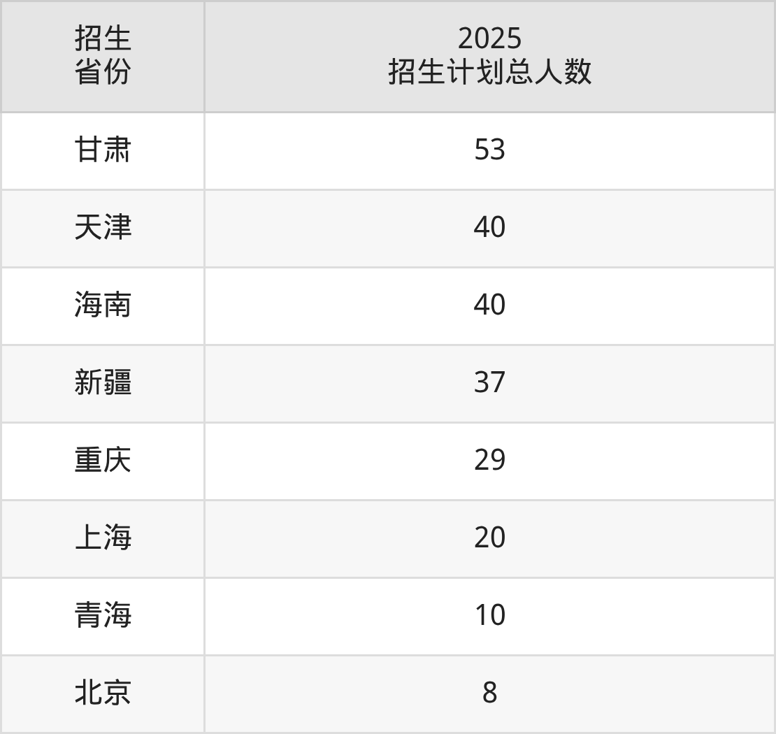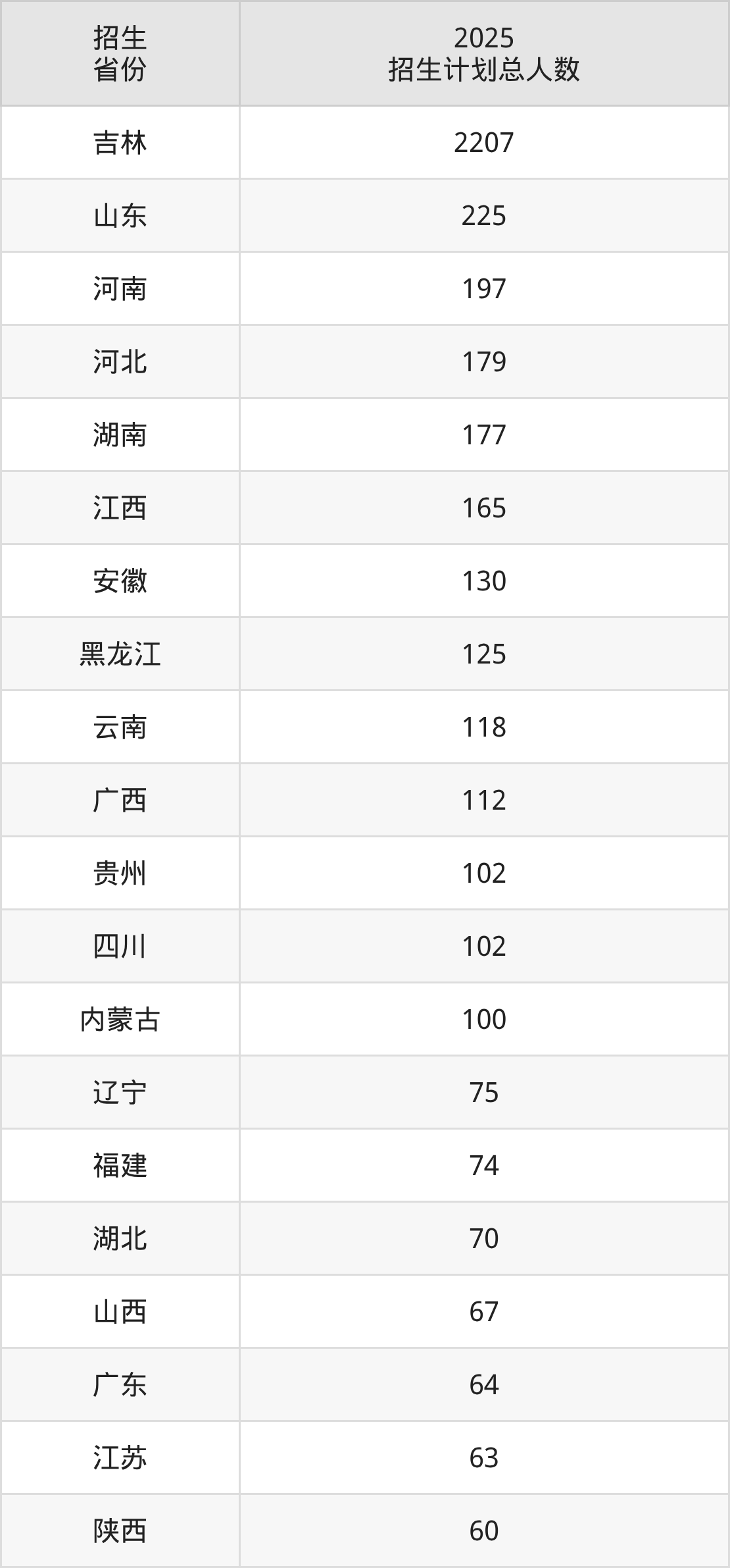 2025年长春工业大学面向全国28个省市开展本科招生;招生专业共54个,招生人数共4649人。2025年在吉林省招生计划总人数是2207人,其中,长春工业大学在吉林省招生人数最多的是自动化。长春工业大学在各省具体招生人数情况如下表。