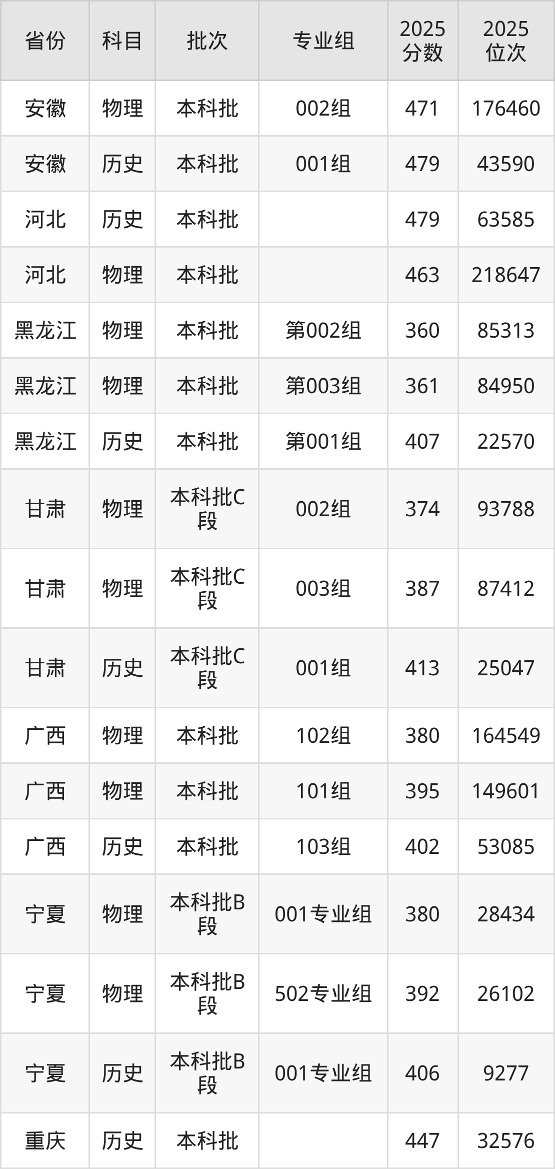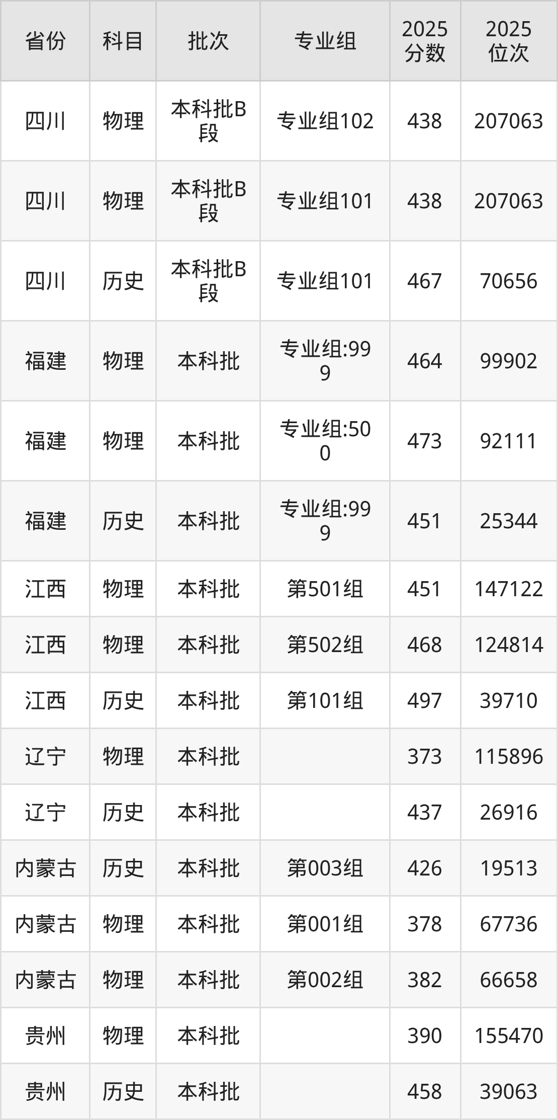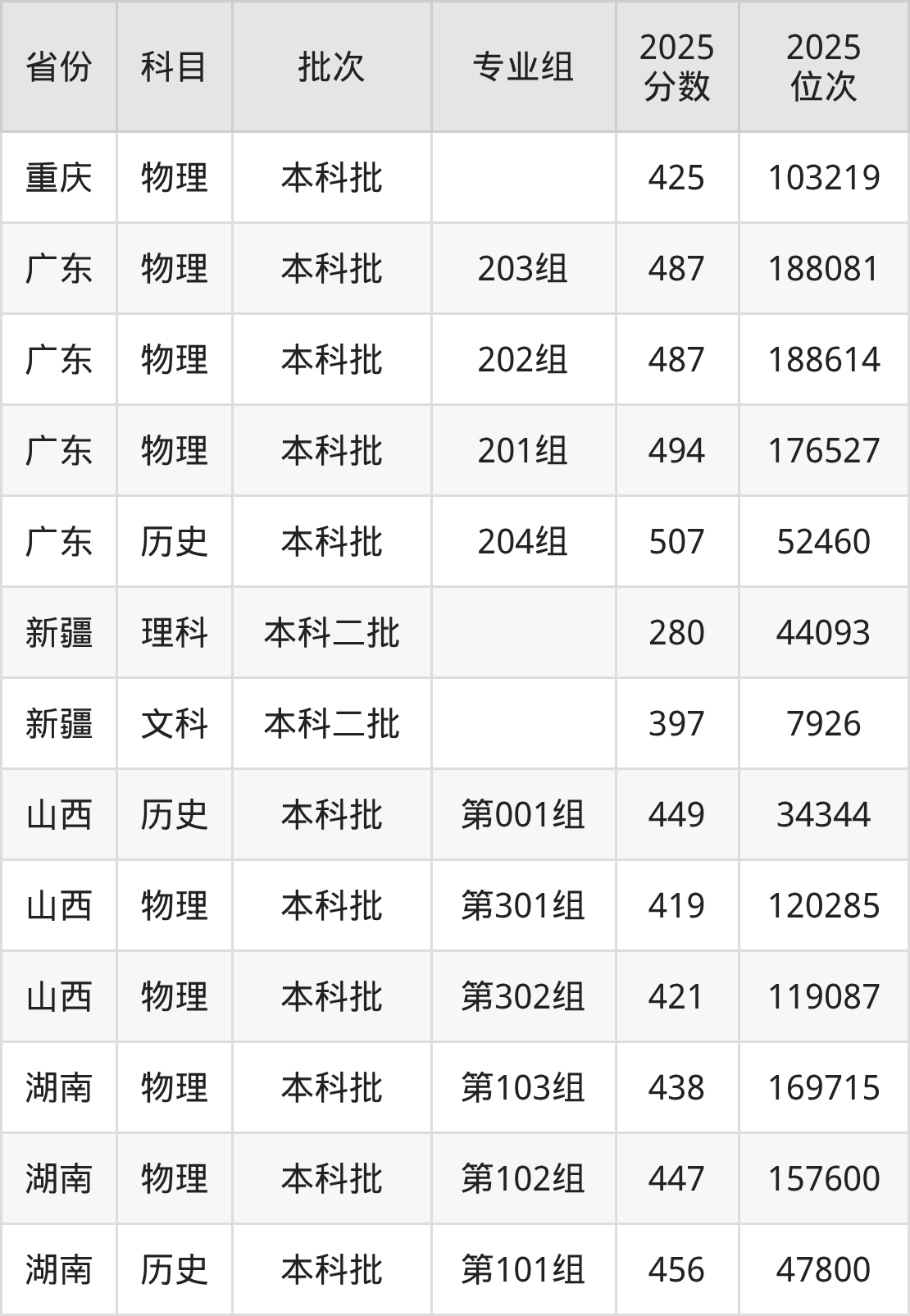 2025年投档录取最低分为373分,录取最低位次为115896名。