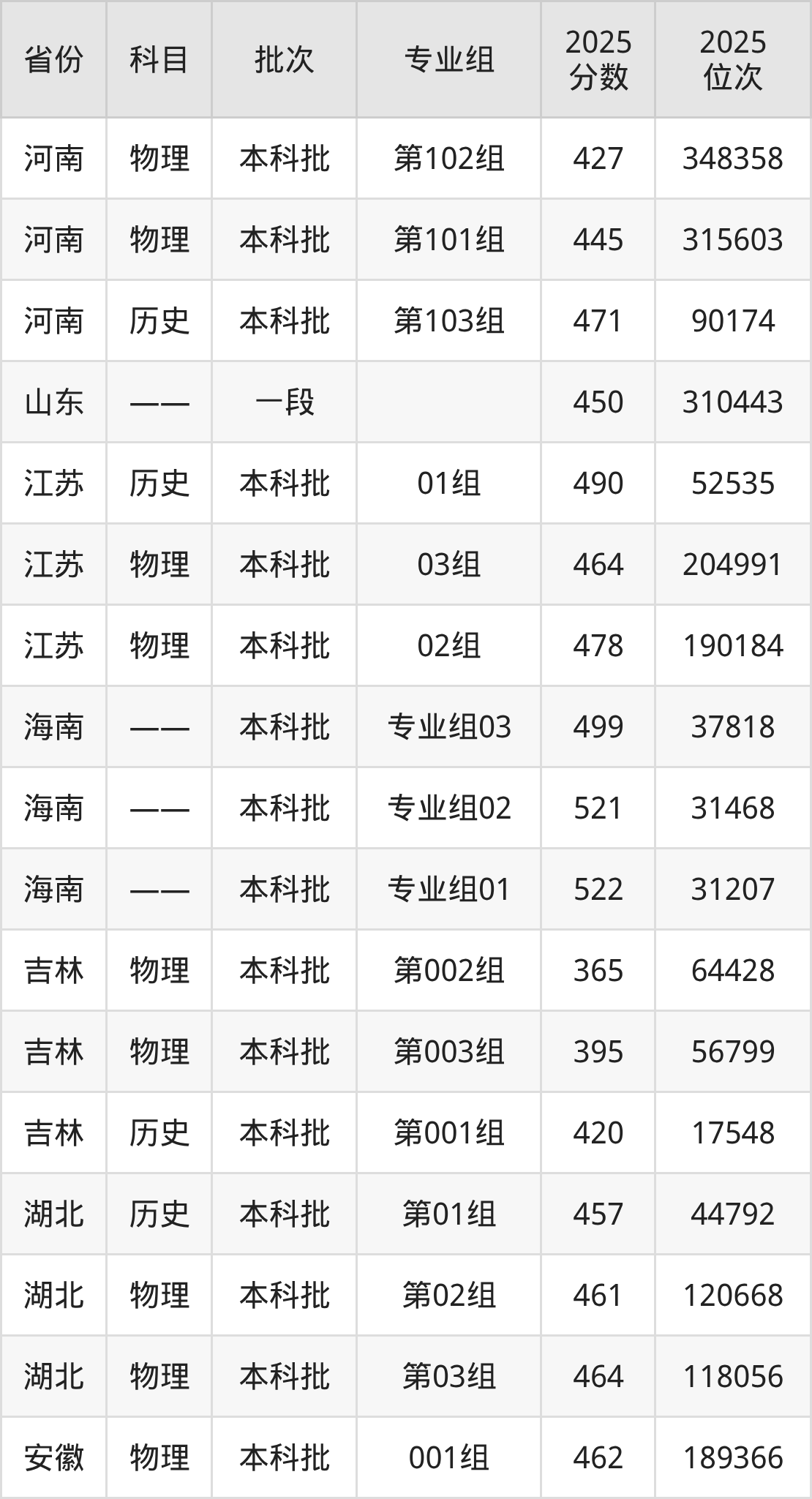 2025年投档录取最低分为458分,录取最低位次为39063名。