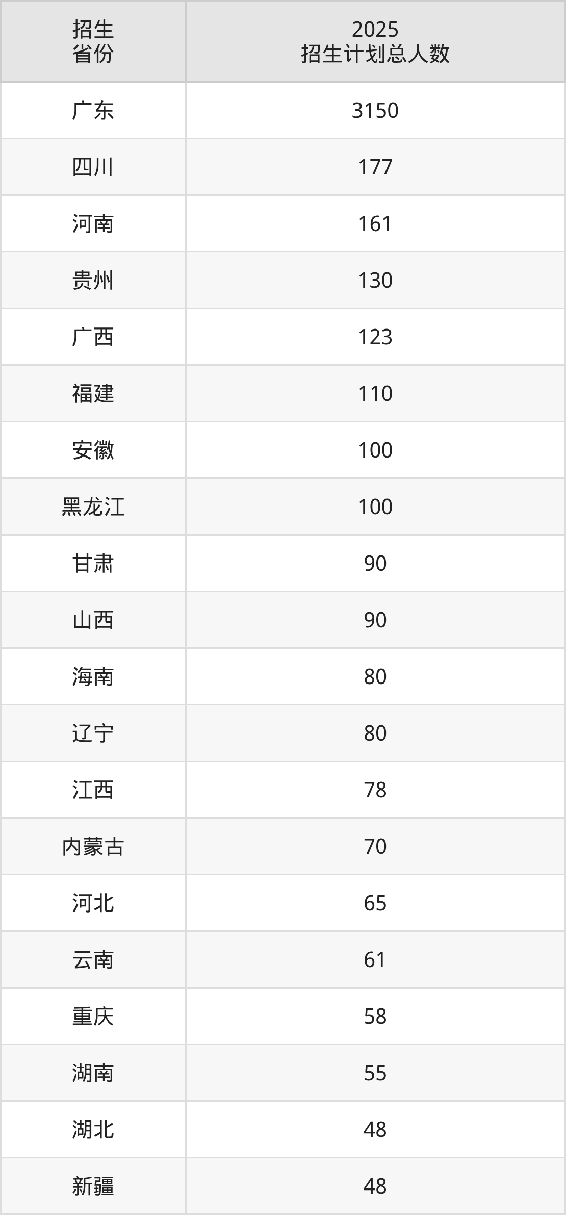 2025年广州城市理工学院面向全国25个省市开展本科招生;招生专业共42个,招生人数共4994人。2025年在广东省招生计划总人数是3150人,其中,广州城市理工学院在广东省招生人数最多的是电气工程及其自动化。广州城市理工学院在各省具体招生人数情况如下表。