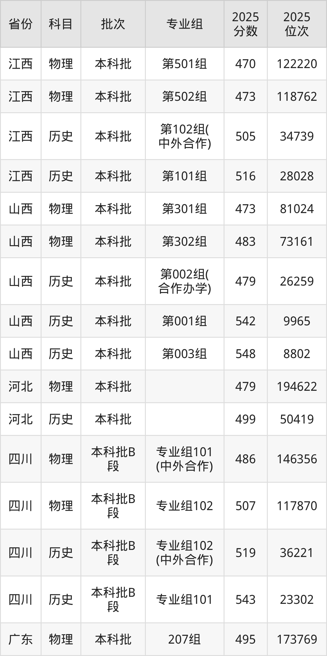 咸阳师范学院01组(中外合作办学):2025年投档录取最低分为503分,录取最低位次为46229名。