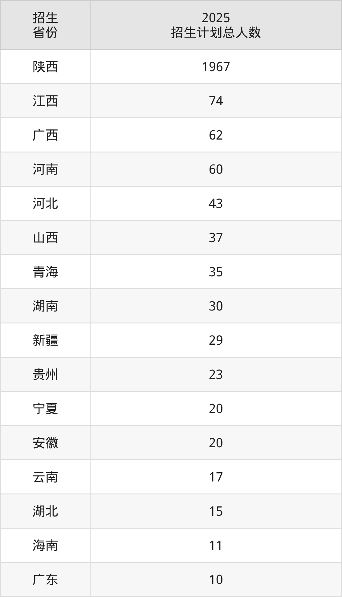 2025年咸阳师范学院面向全国25个省市开展本科招生;招生专业共39个,招生人数共2517人。2025年在陕西省招生计划总人数是1967人,其中,咸阳师范学院在陕西省招生人数最多的是材料化学。咸阳师范学院在各省具体招生人数情况如下表。