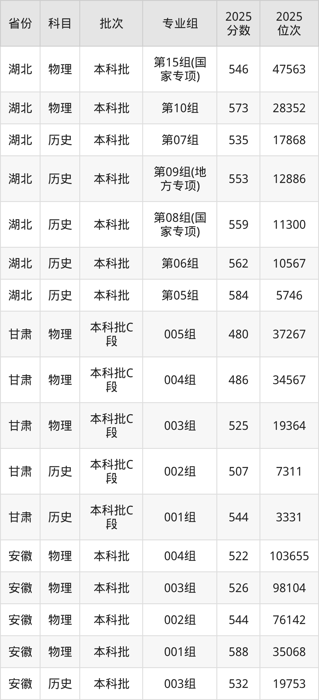 湖北中医药大学第15组(国家专项计划):2025年投档录取最低分为546分,录取最低位次为47563名。