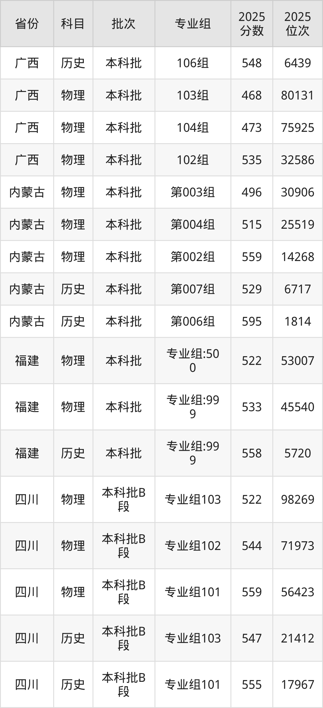 普通类本科物理类最低515分,本科历史类最低548分