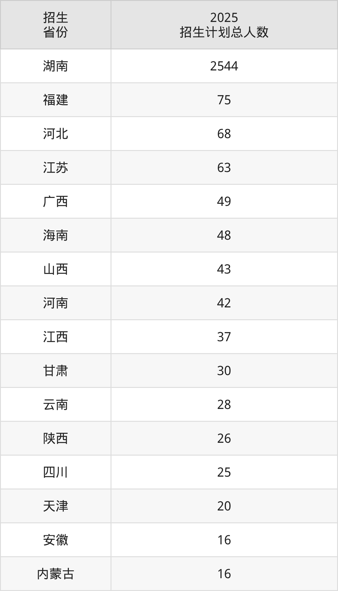 2025年怀化学院面向全国24个省市开展本科招生;招生专业共36个,招生人数共3238人。2025年在湖南省招生计划总人数是2544人,其中,怀化学院在湖南省招生人数最多的是数学与应用数学。怀化学院在各省具体招生人数情况如下表。