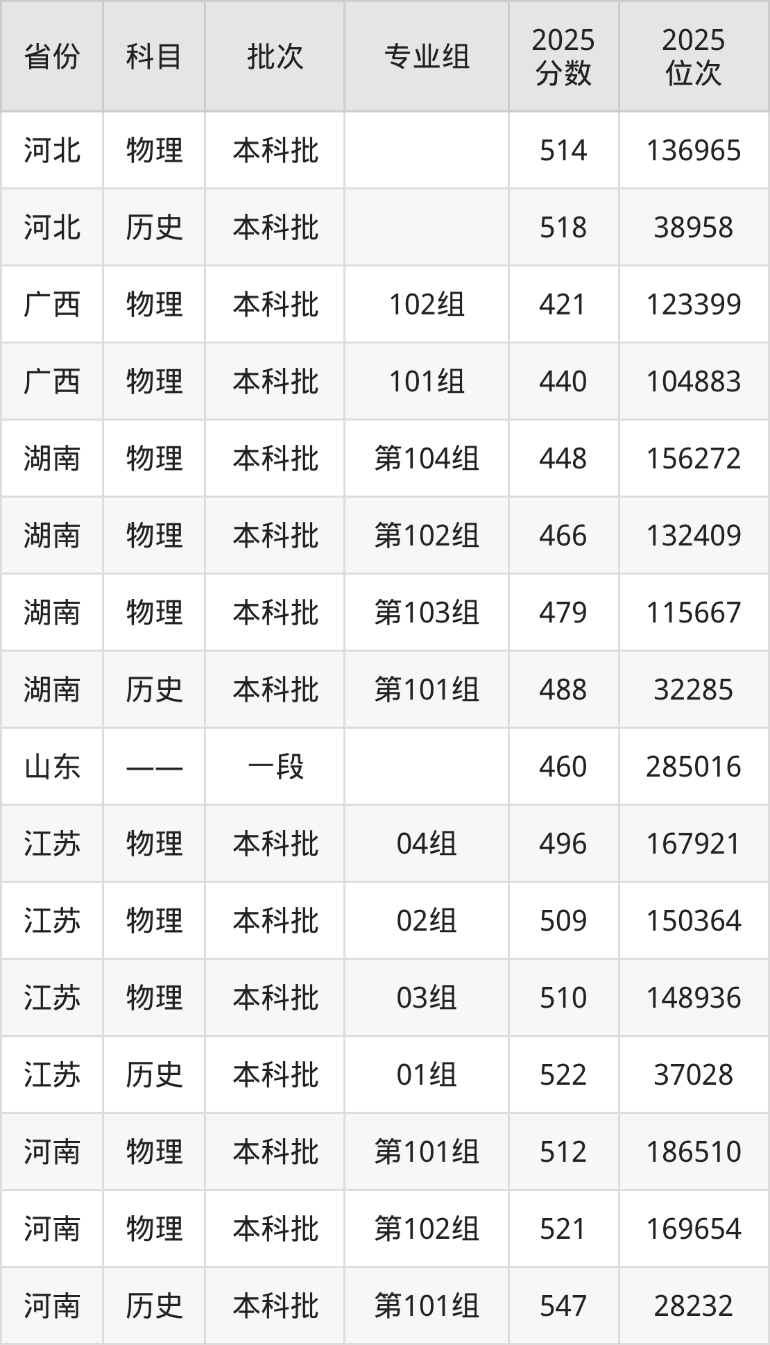普通类本科物理类最低512分,本科历史类最低547分