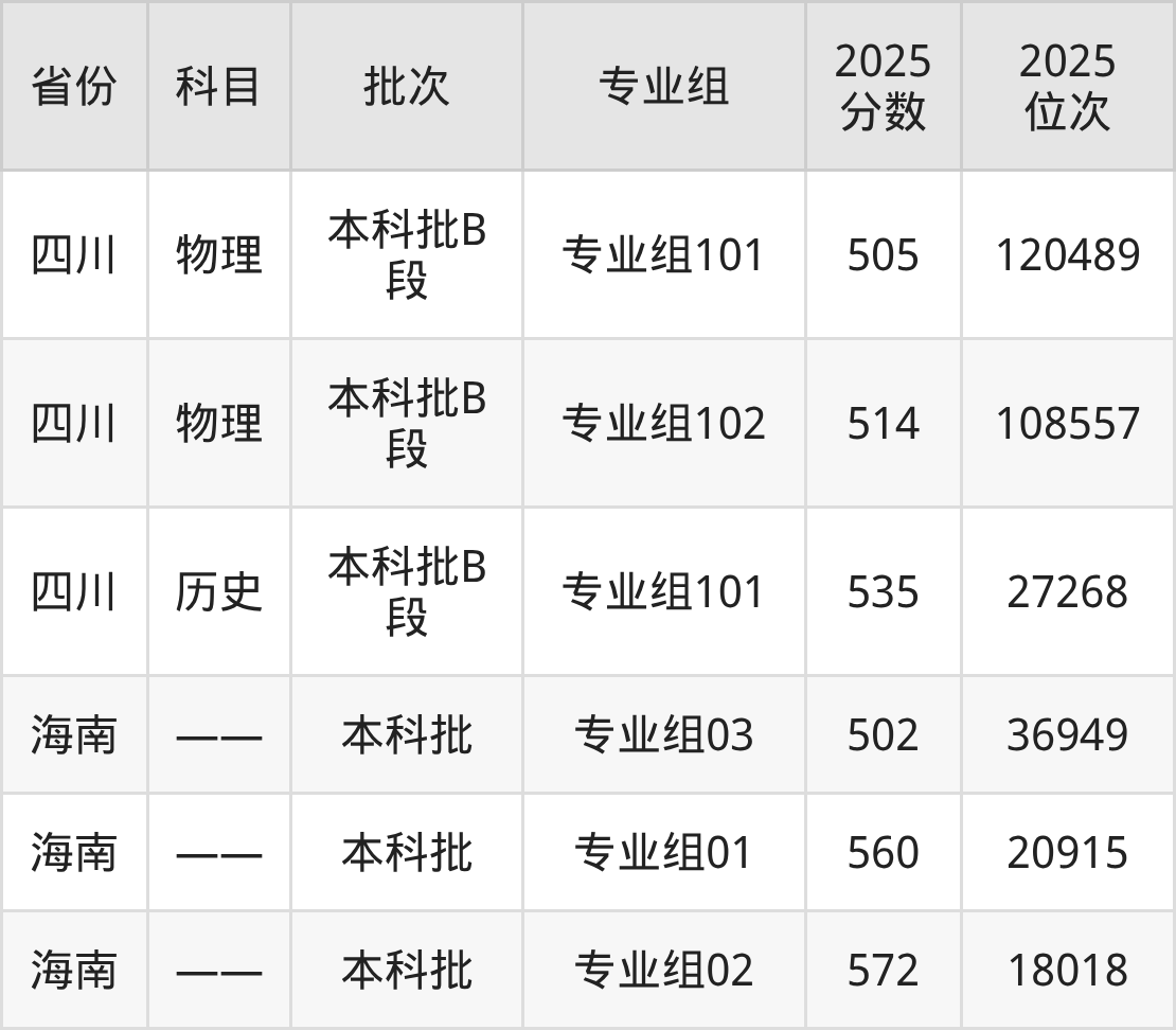 2025年投档录取最低分为505分,录取最低位次为16516名。