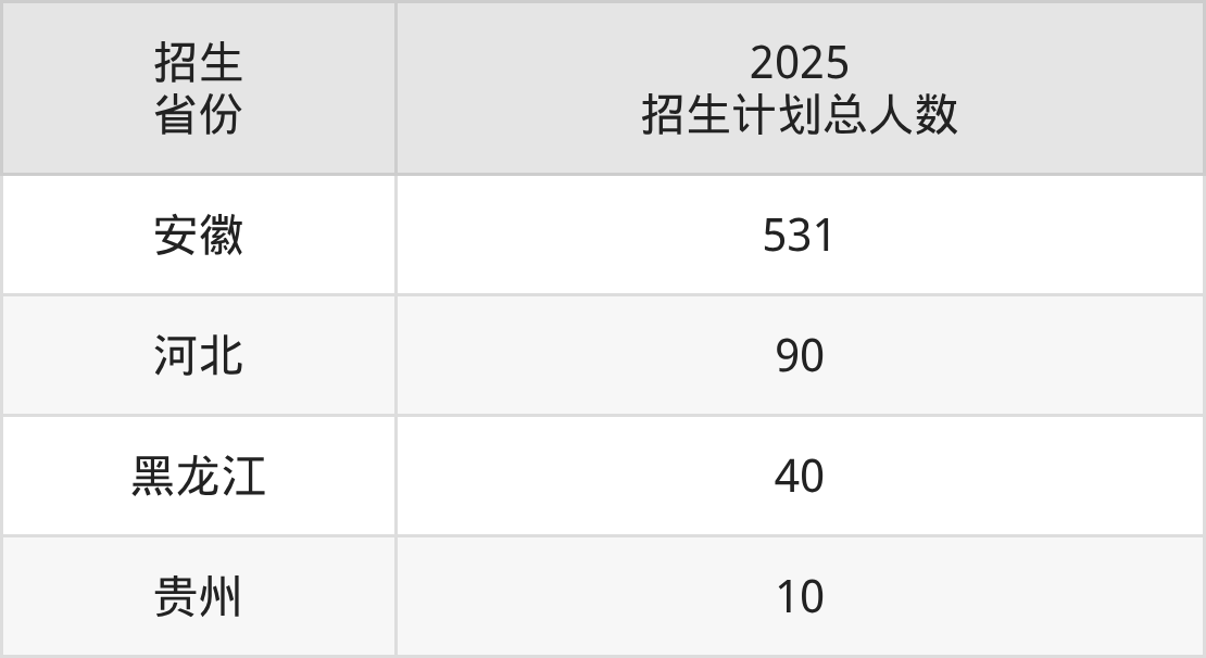 2025年民办万博科技职业学院面向全国4个省市开展专科招生;招生专业共33个,招生人数共671人。2025年在安徽省招生计划总人数是531人,其中,民办万博科技职业学院在安徽省招生人数最多的是学前教育。民办万博科技职业学院在各省具体招生人数情况如下表。